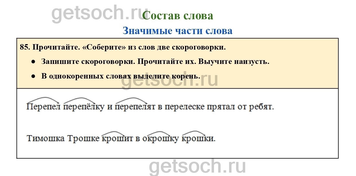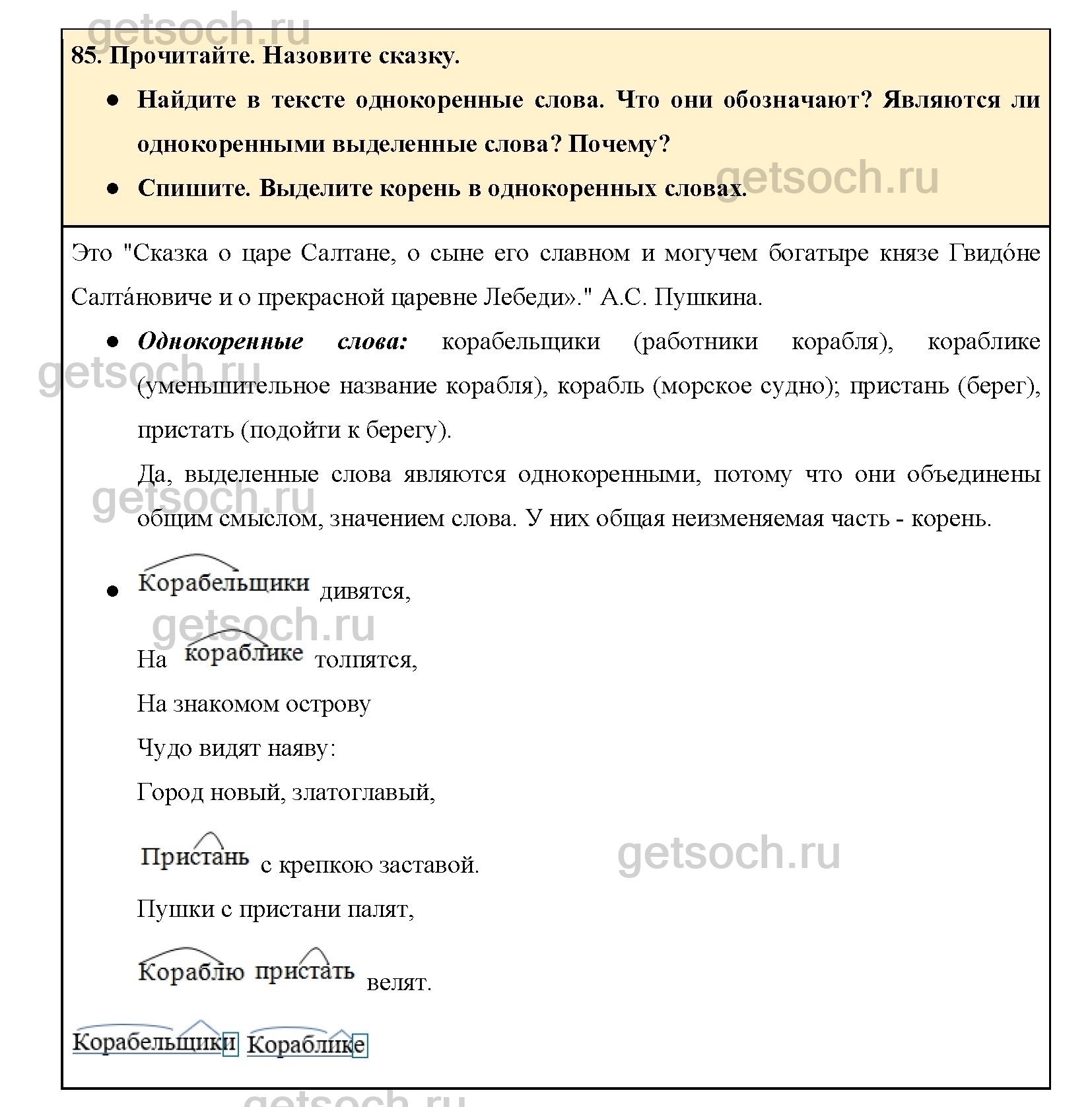 Рассмотрим ответы на Упражнение 85 из учебника по русскому языку для 4 класса Канакиной