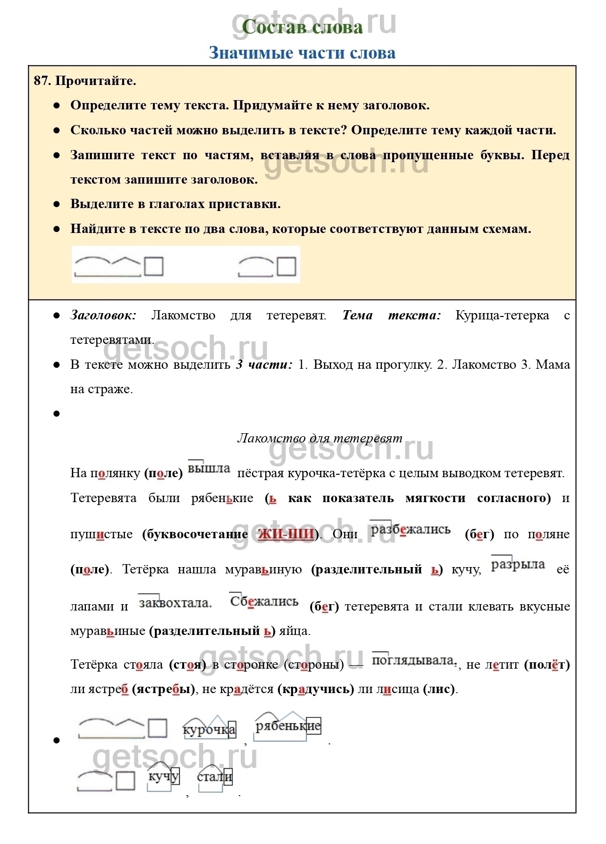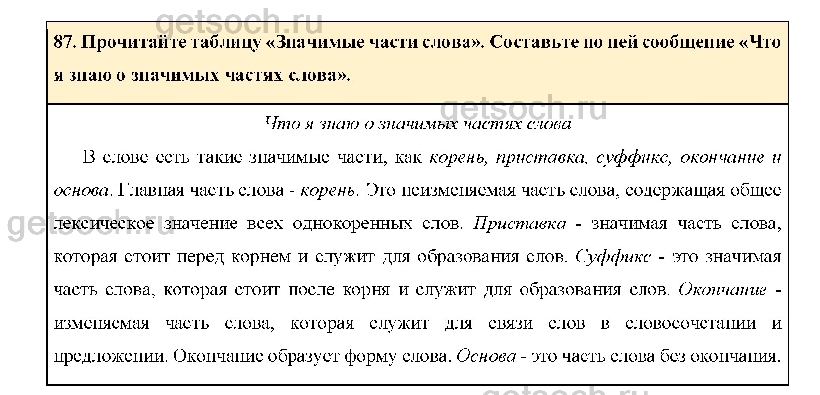 Рассмотрим ответы на Упражнение 87 из учебника по русскому языку для 4 класса Канакиной