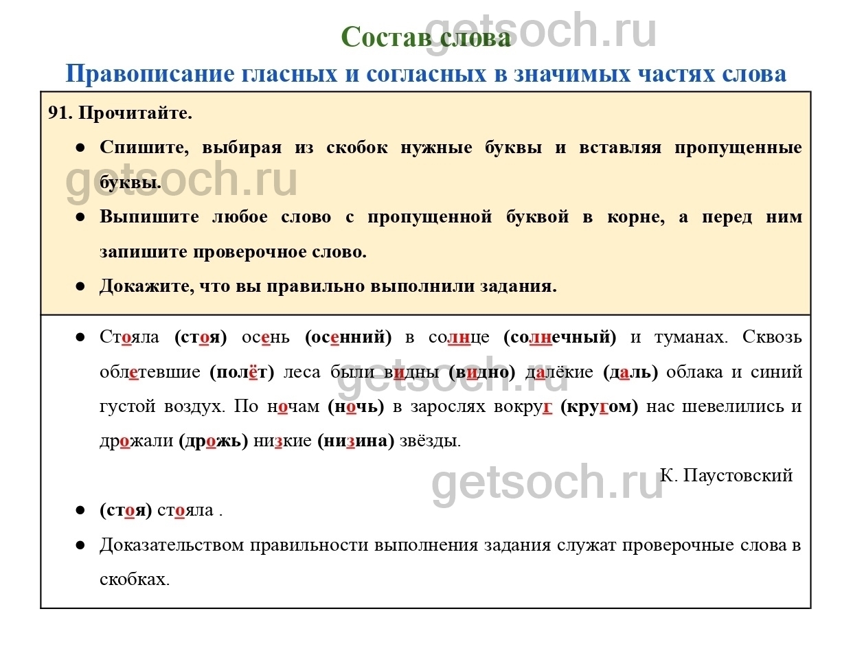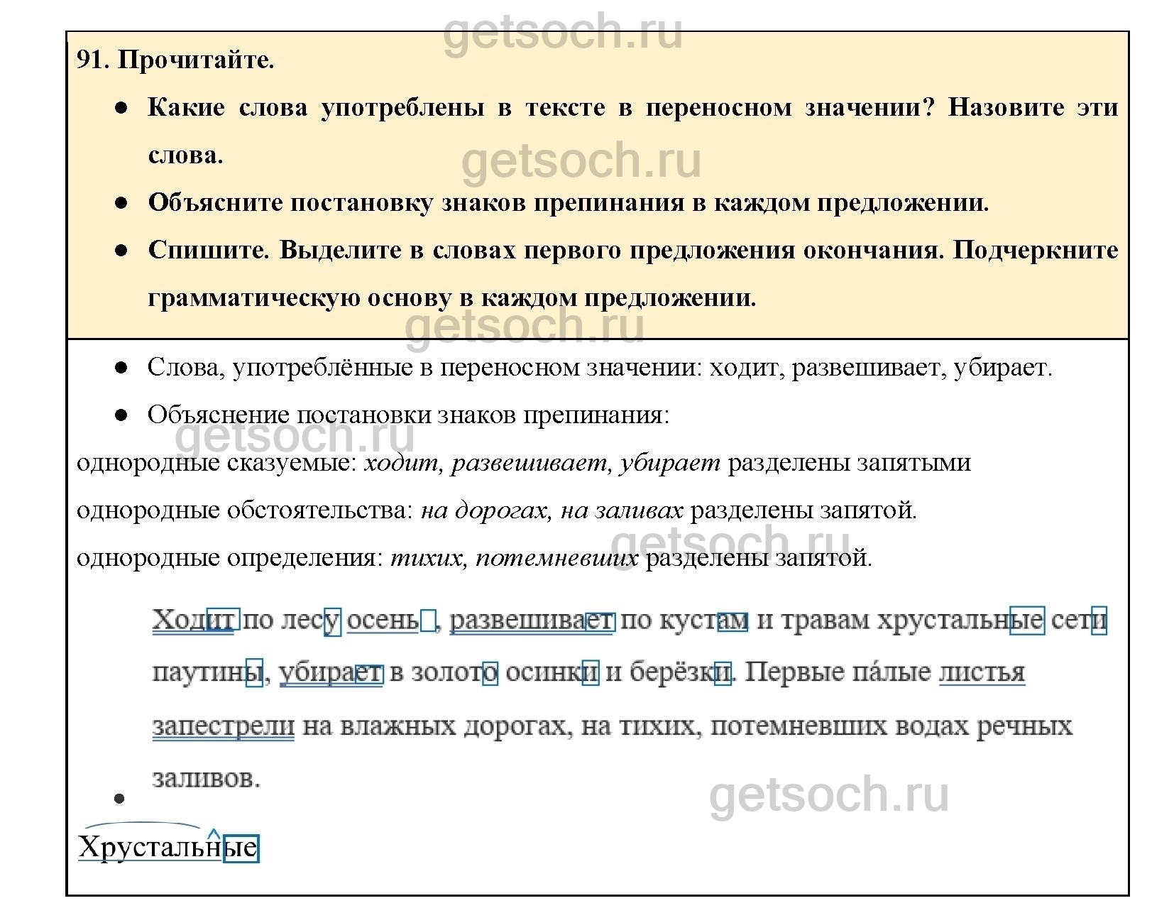 Рассмотрим ответы на Упражнение 91 из учебника по русскому языку для 4 класса Канакиной