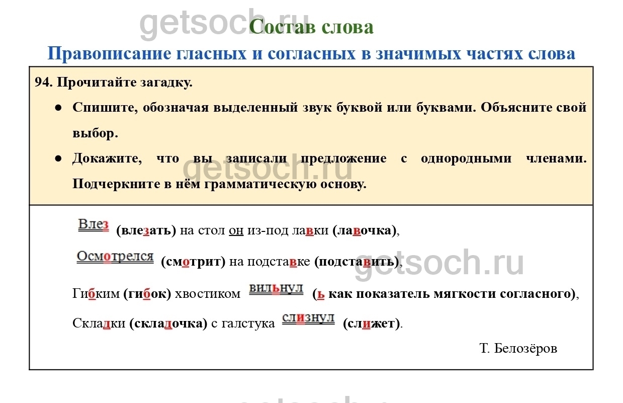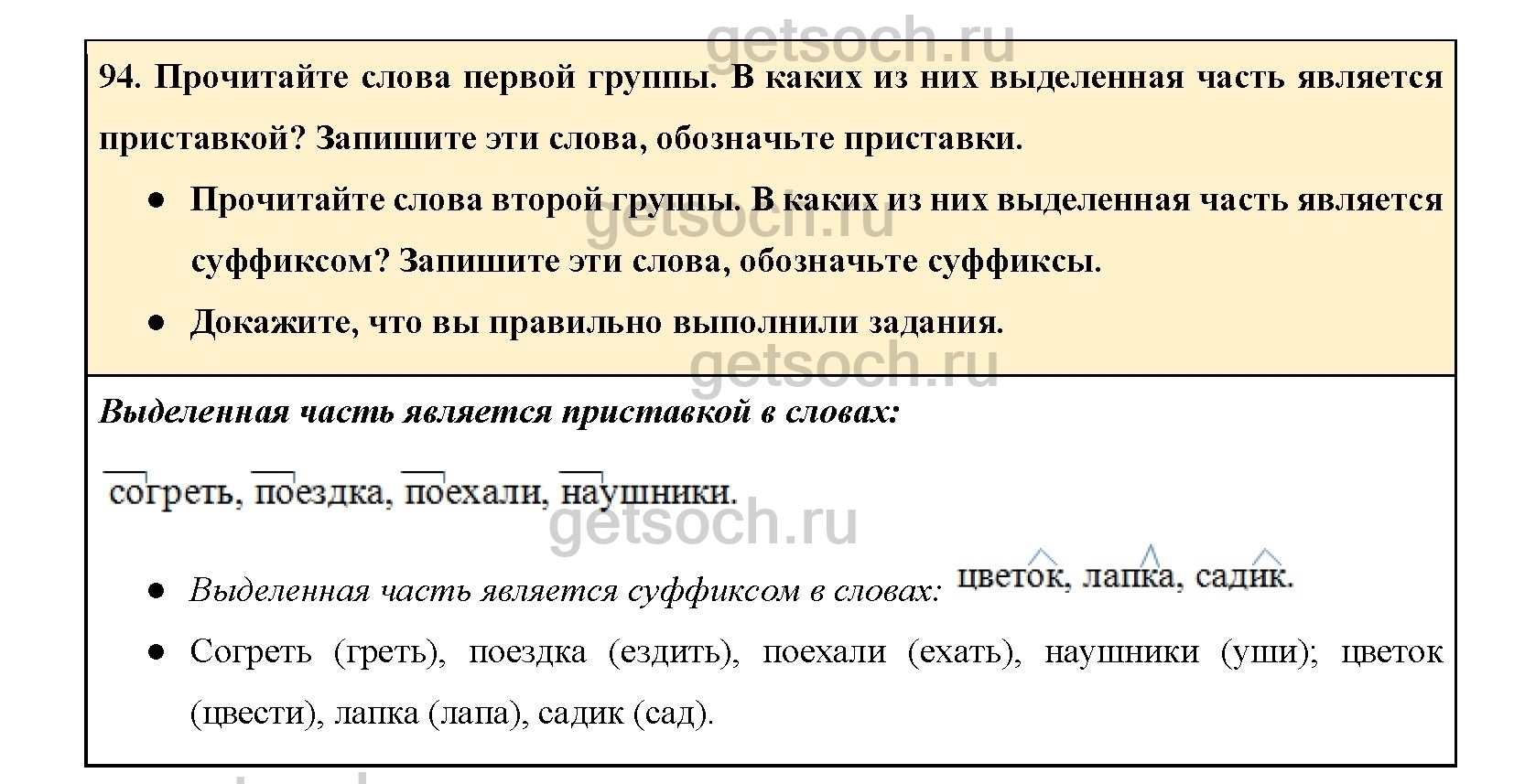 Рассмотрим ответы на Упражнение 94 из учебника по русскому языку для 4 класса Канакиной