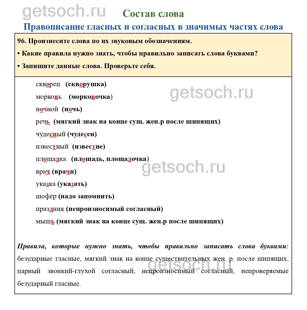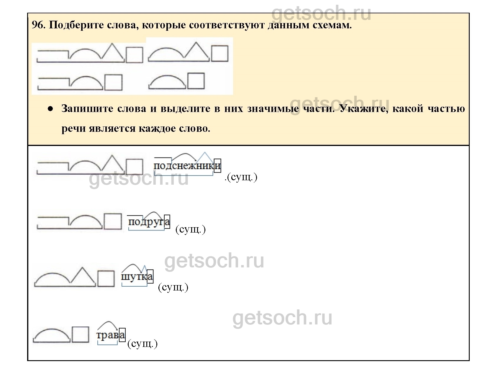 Рассмотрим ответы на Упражнение 96 из учебника по русскому языку для 4 класса Канакиной