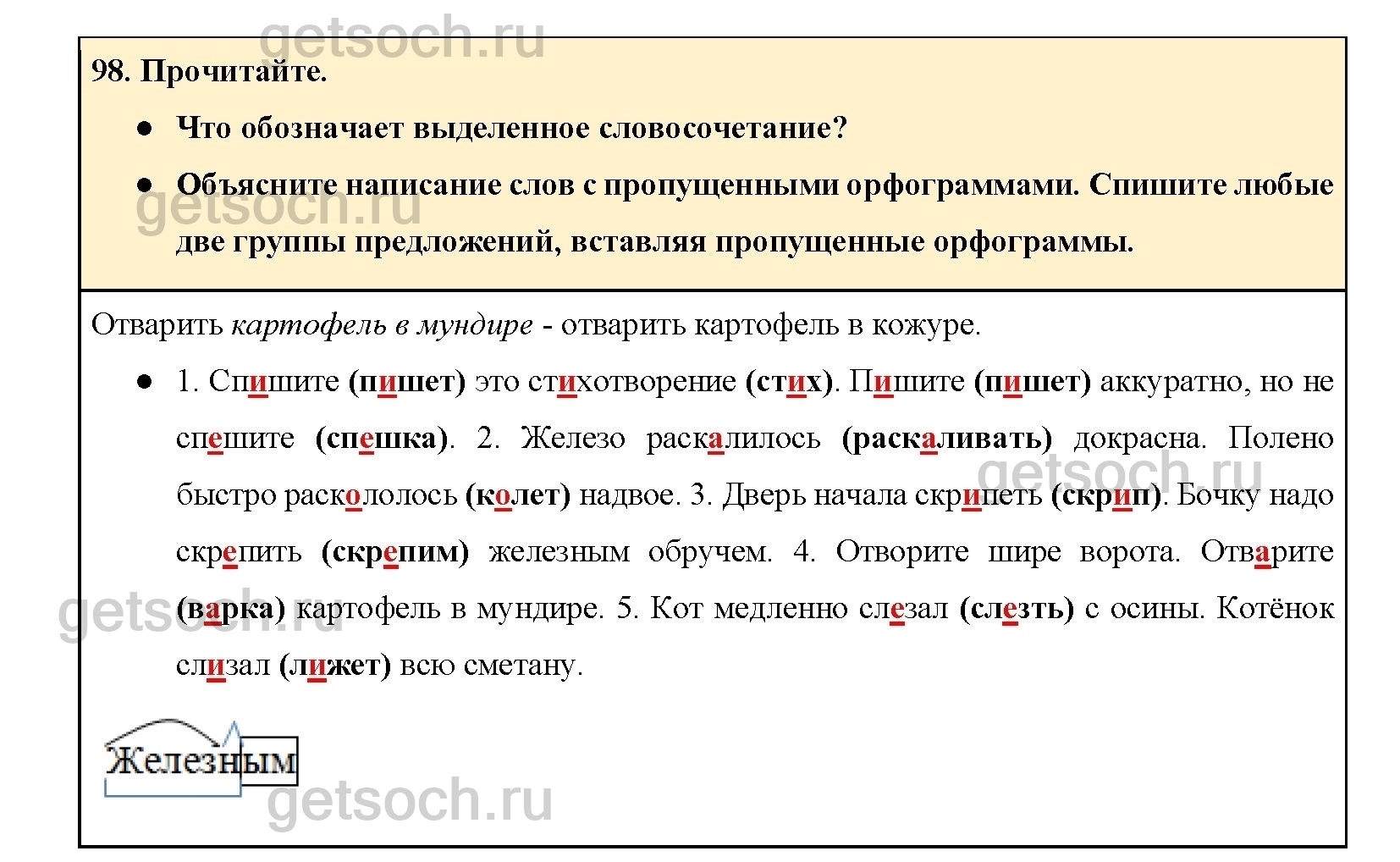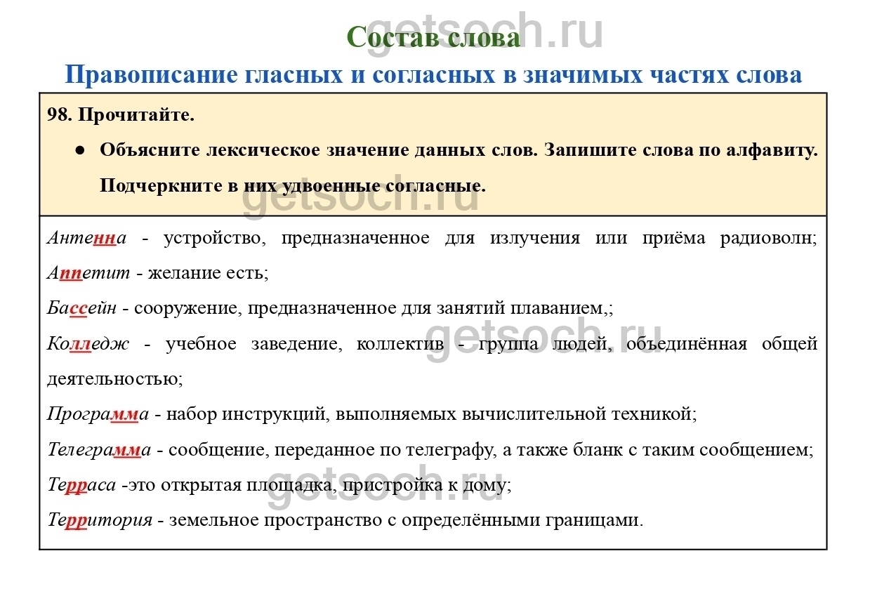 Рассмотрим ответы на Упражнение 98 из учебника по русскому языку для 4 класса Канакиной