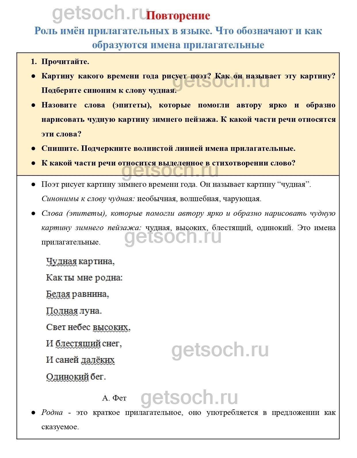 Рассмотрим ответы на Упражнение 1 из учебника по русскому языку для 4 класса Канакиной