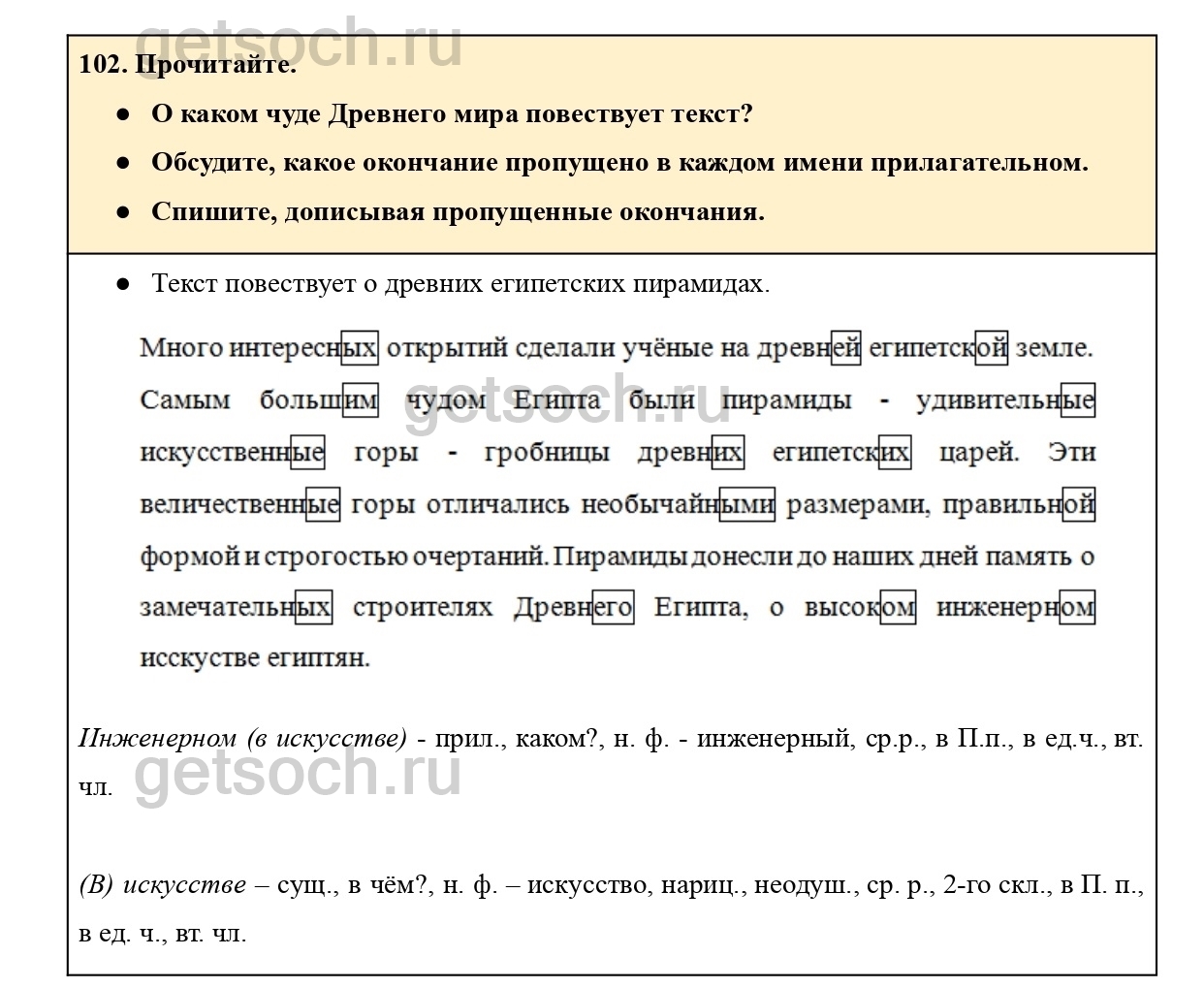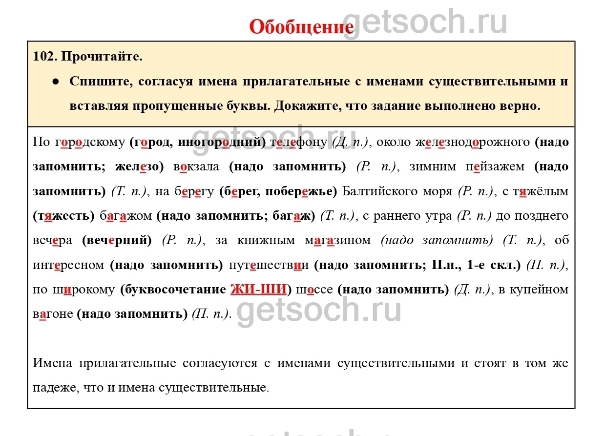 Рассмотрим ответы на Упражнение 102 из учебника по русскому языку для 4 класса Канакиной