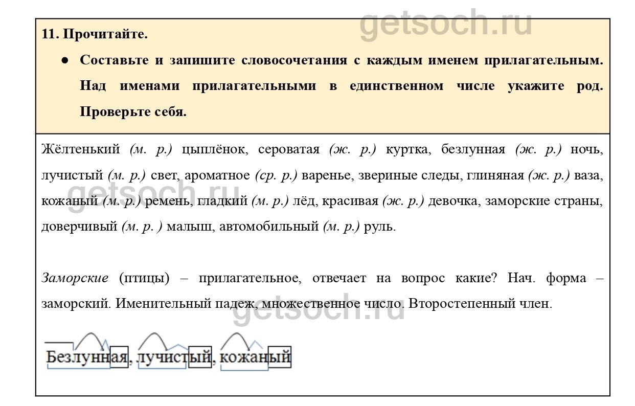 Рассмотрим ответы на Упражнение 11 из учебника по русскому языку для 4 класса Канакиной