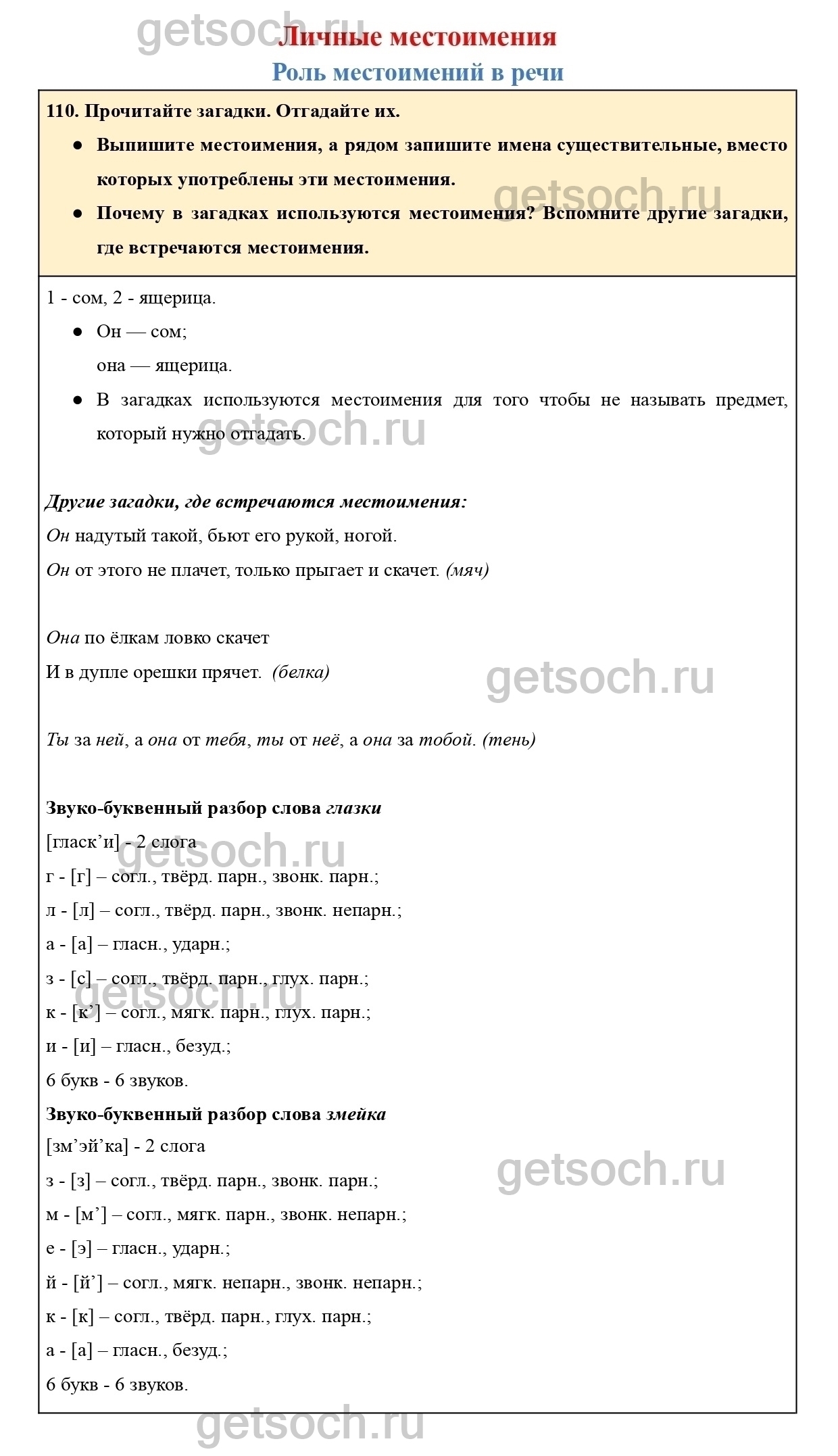 Рассмотрим ответы на Упражнение 110 из учебника по русскому языку для 4 класса Канакиной