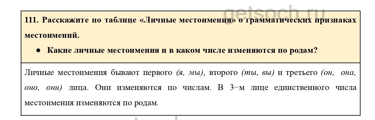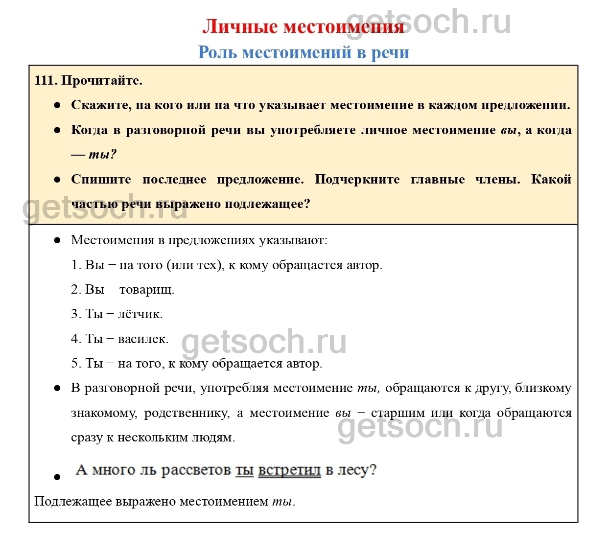 Рассмотрим ответы на Упражнение 111 из учебника по русскому языку для 4 класса Канакиной