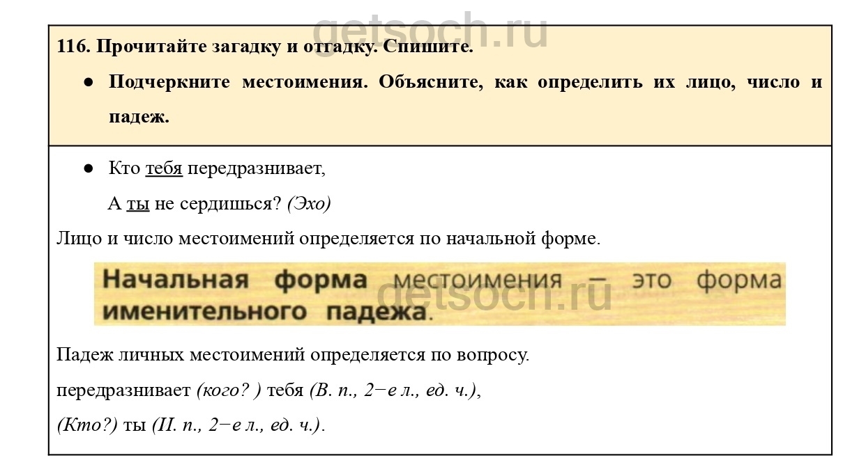 Рассмотрим ответы на Упражнение 116 из учебника по русскому языку для 4 класса Канакиной