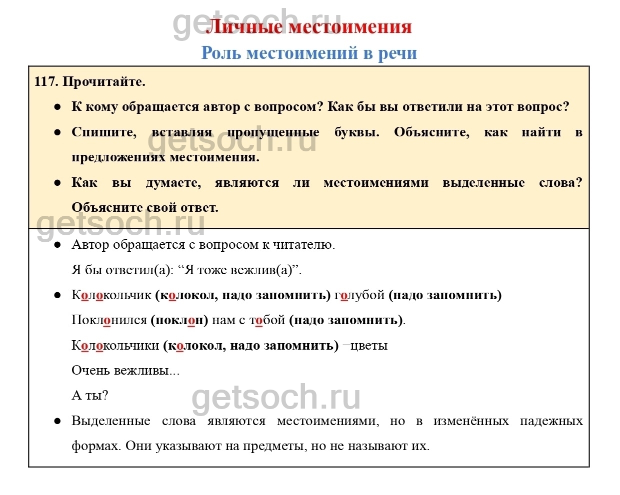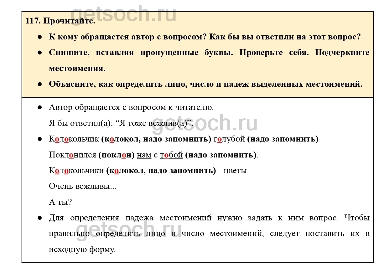 Рассмотрим ответы на Упражнение 117 из учебника по русскому языку для 4 класса Канакиной