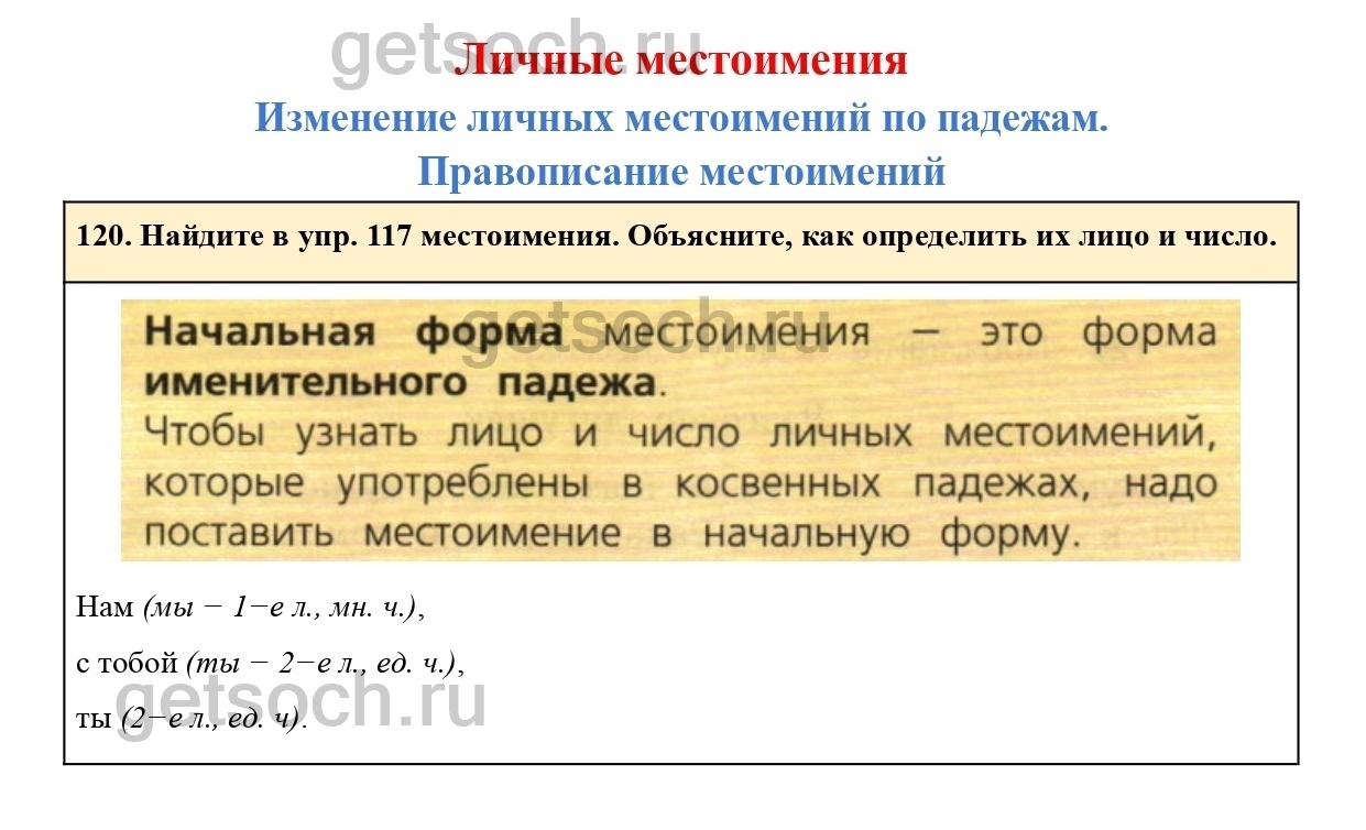 120. Найдите в упр. 117 местоимения. Объясните, как определить их лицо и число.