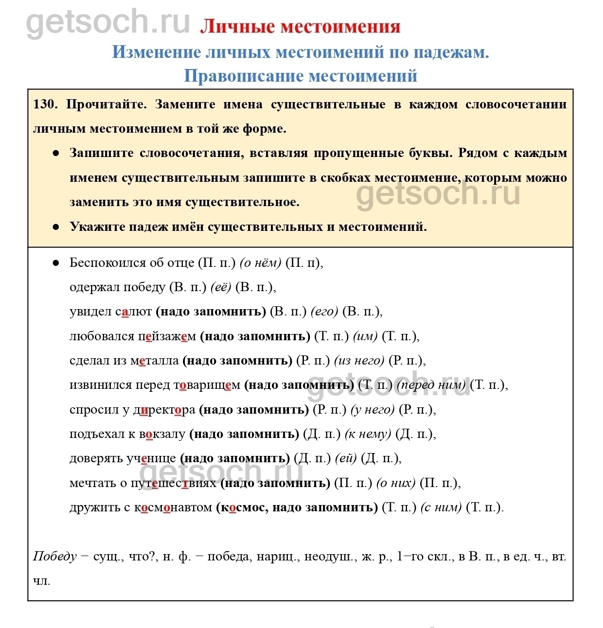 130. Прочитайте. Замените имена существительные в каждом словосочетании личным местоимением в той же форме.