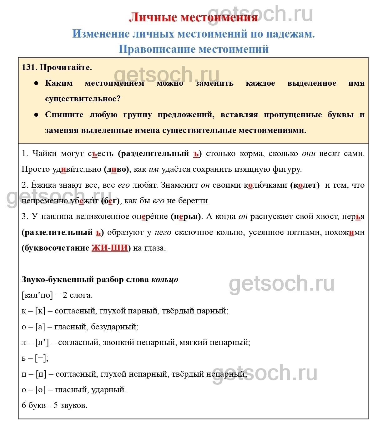 Рассмотрим ответы на Упражнение 131 из учебника по русскому языку для 4 класса Канакиной