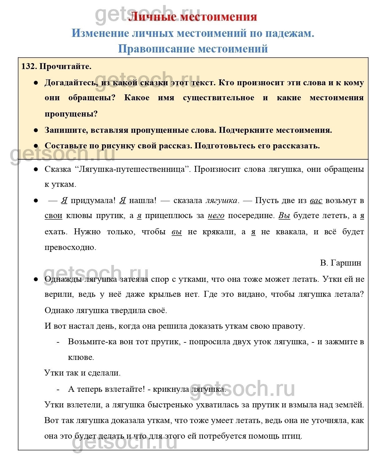 Рассмотрим ответы на Упражнение 132 из учебника по русскому языку для 4 класса Канакиной