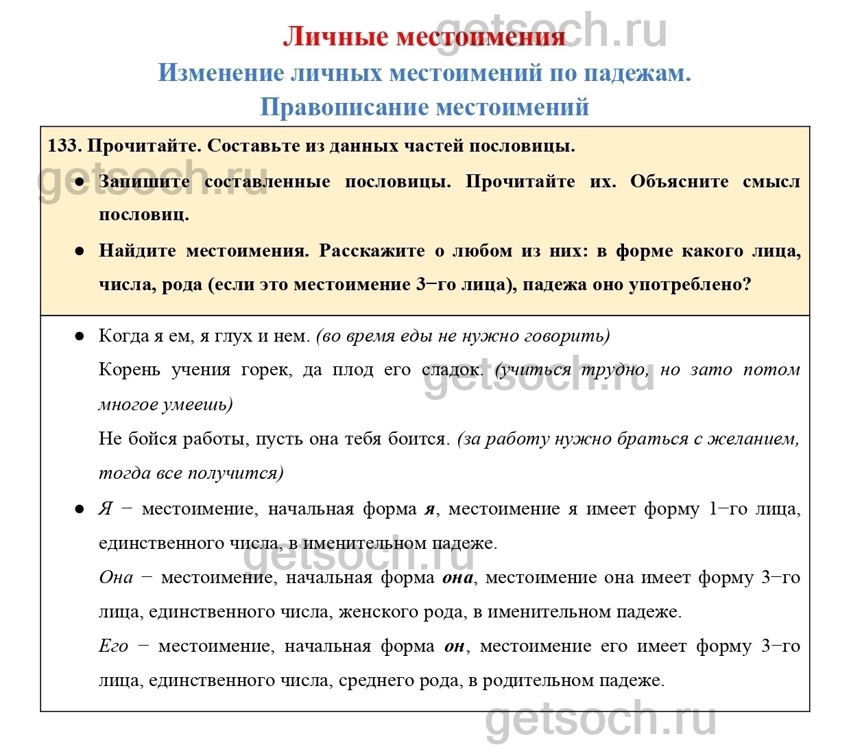 Рассмотрим ответы на Упражнение 133 из учебника по русскому языку для 4 класса Канакиной