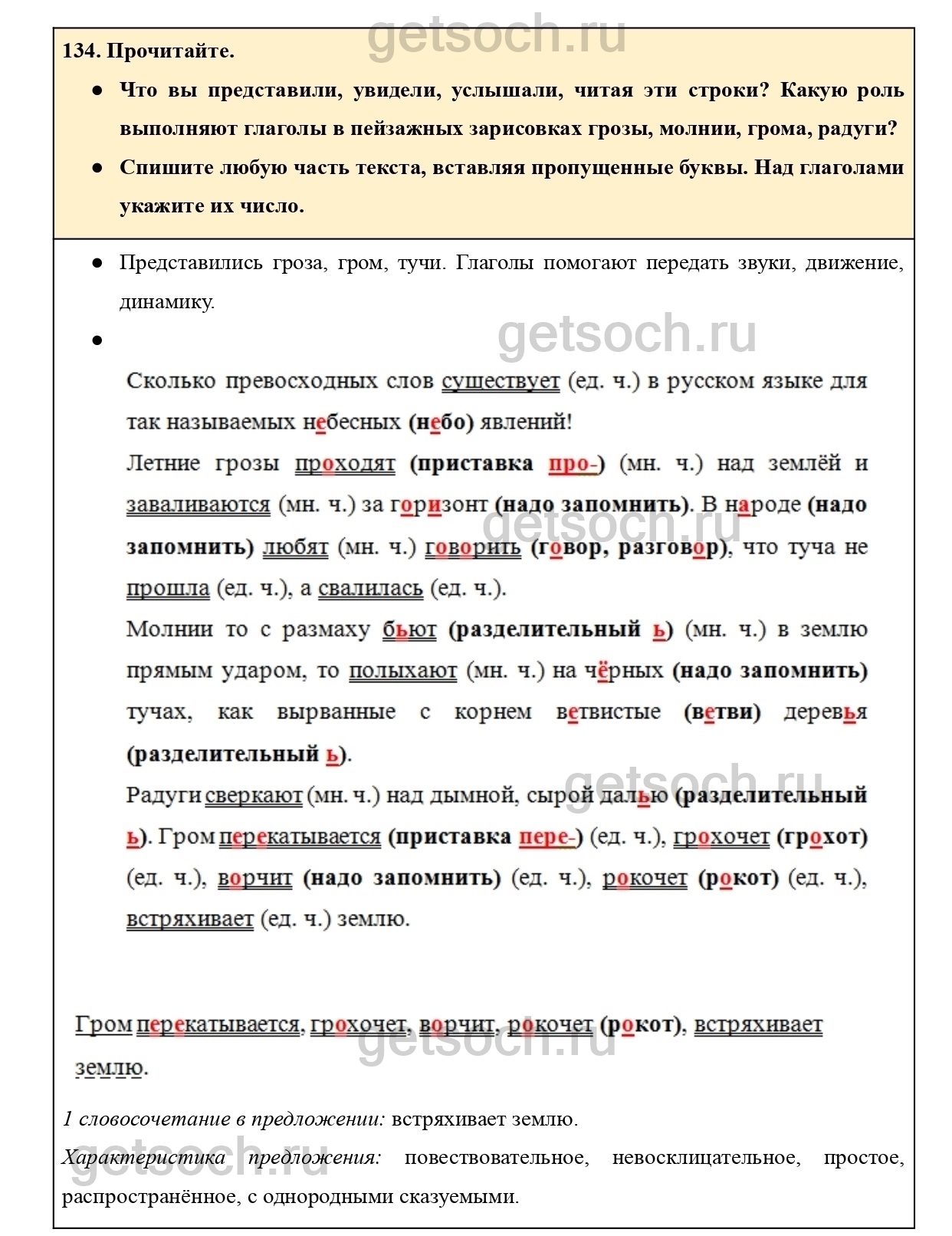 Рассмотрим ответы на Упражнение 134 из учебника по русскому языку для 4 класса Канакиной