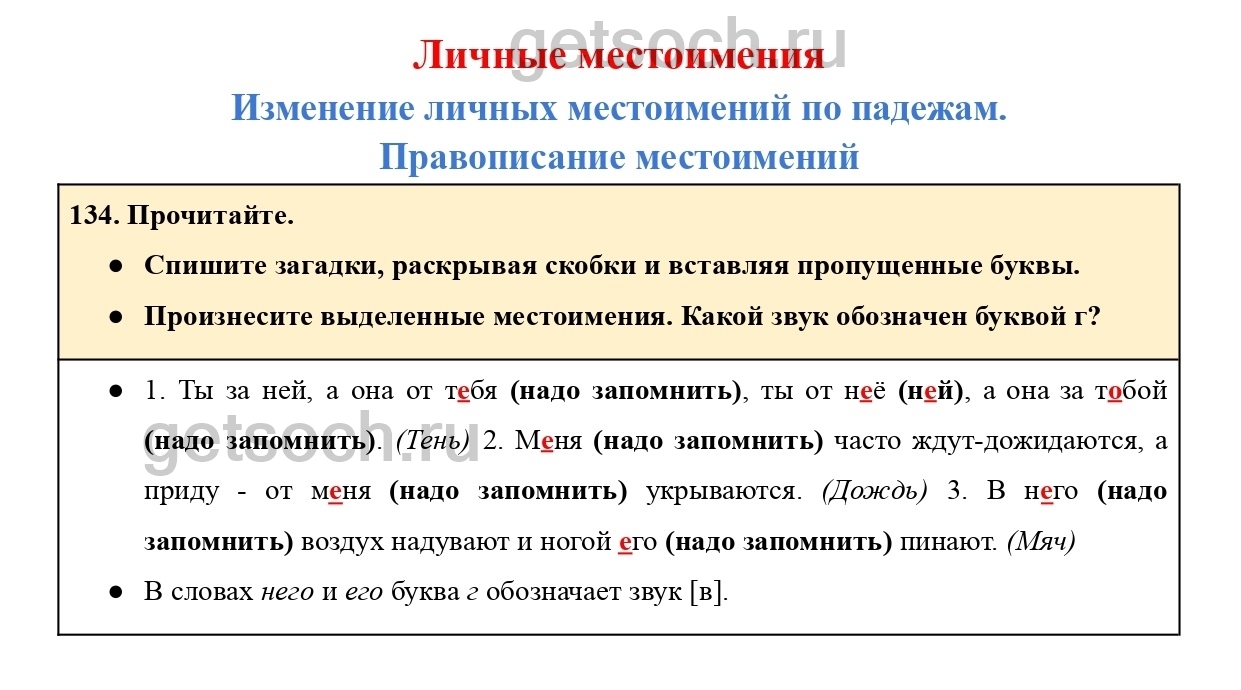 Произнесите выделенные местоимения. Какой звук обозначен буквой г?