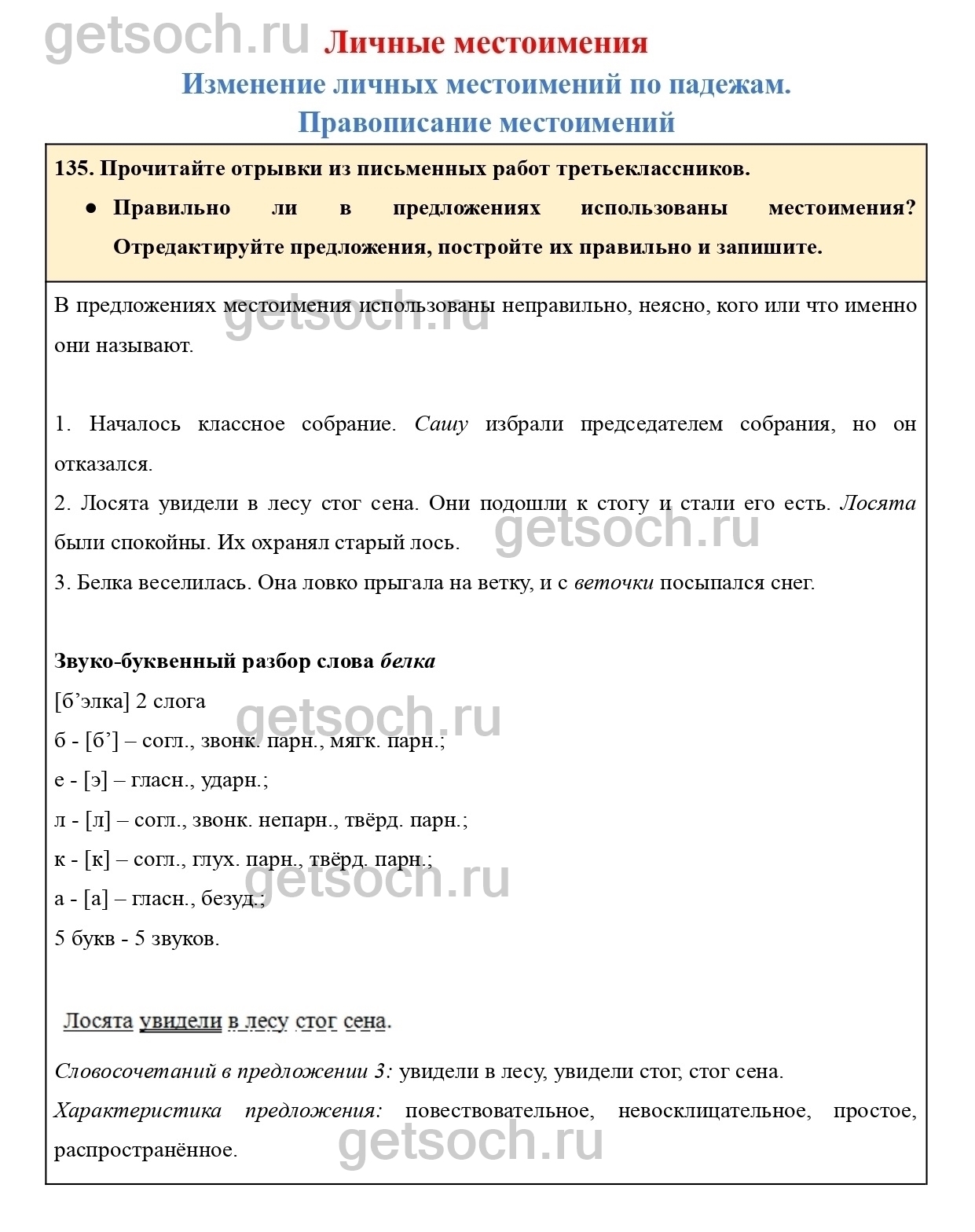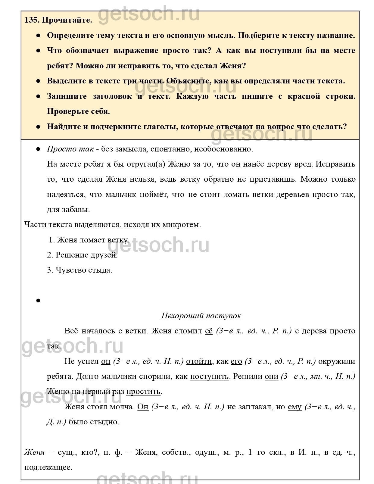 Рассмотрим ответы на Упражнение 135 из учебника по русскому языку для 4 класса Канакиной