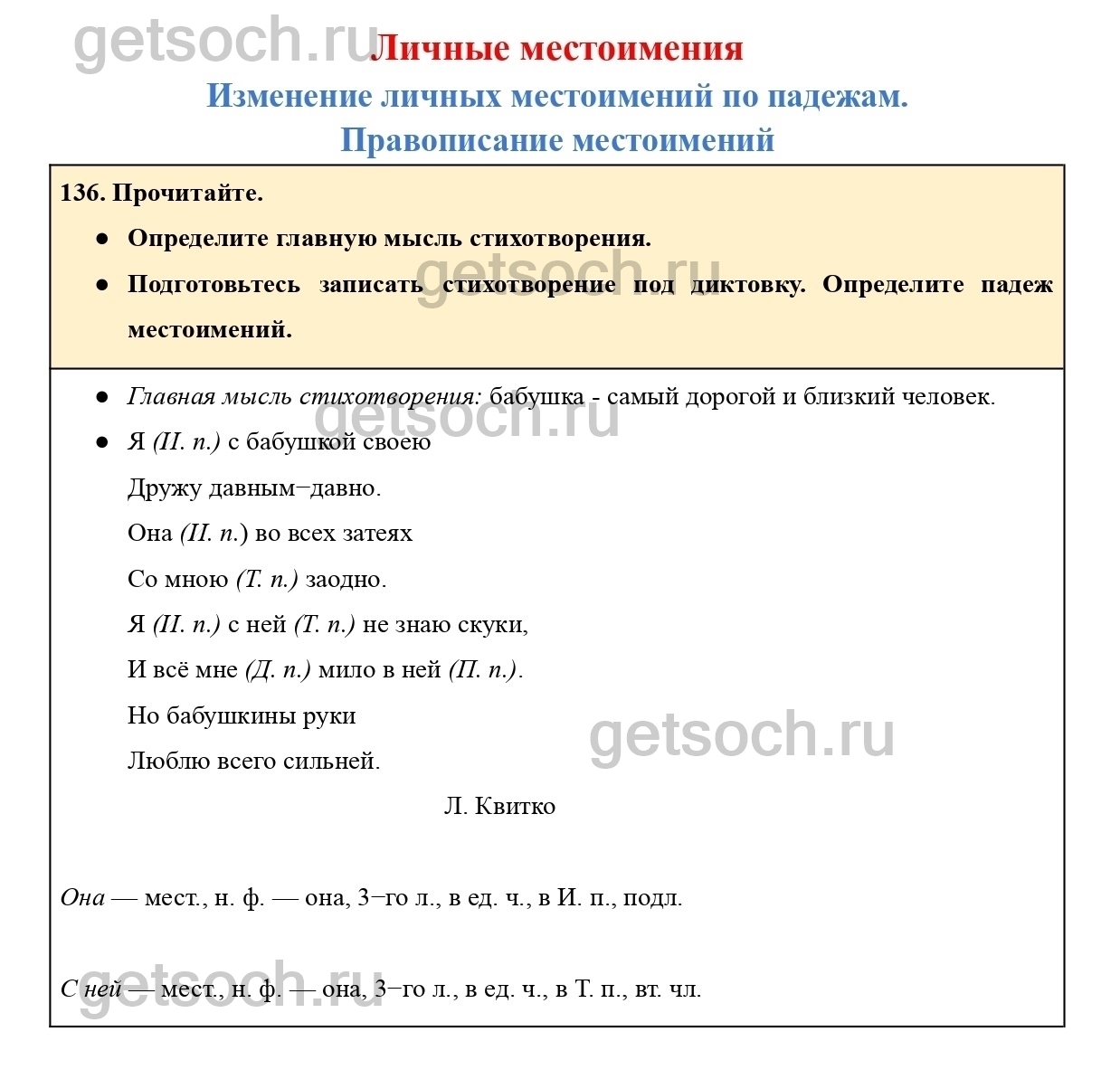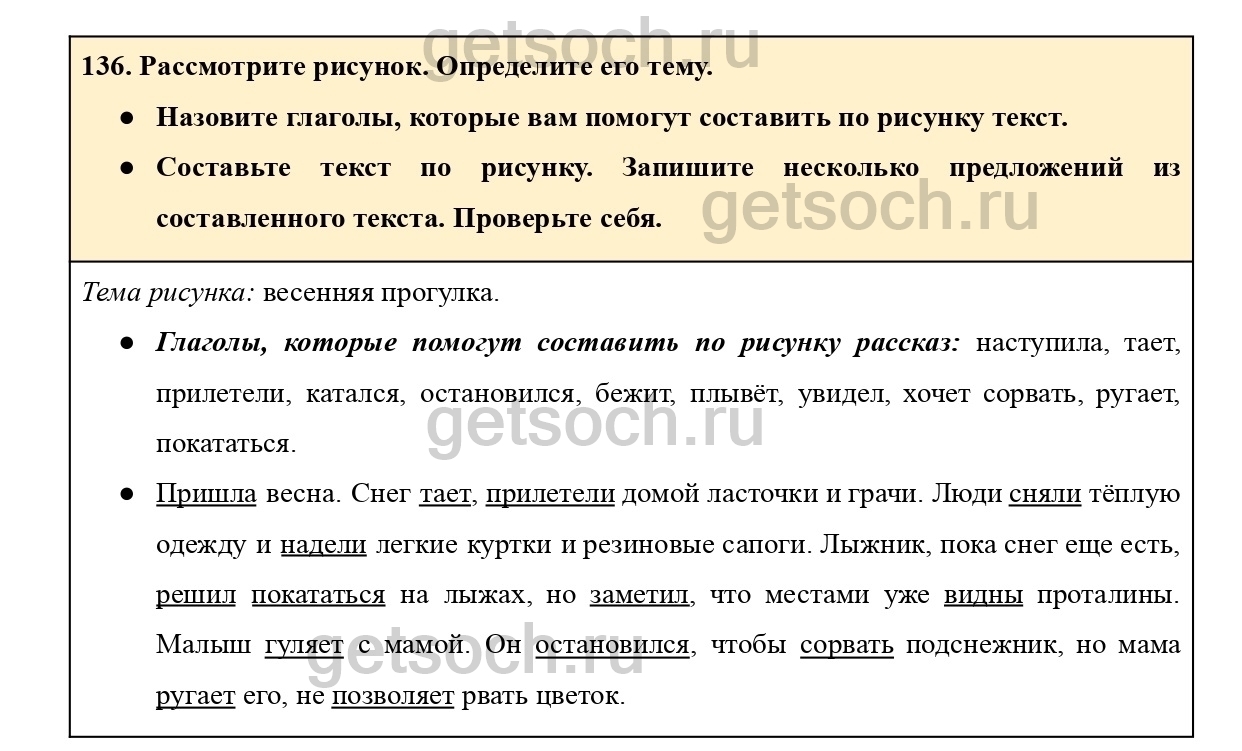 Рассмотрим ответы на Упражнение 136 из учебника по русскому языку для 4 класса Канакиной