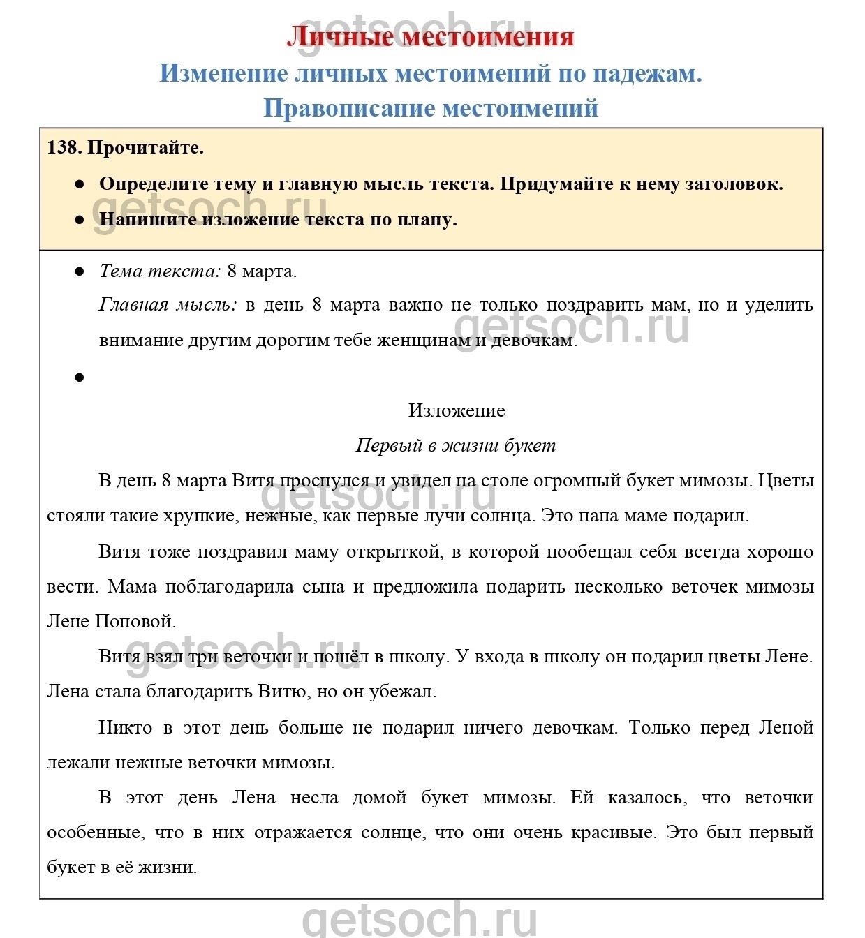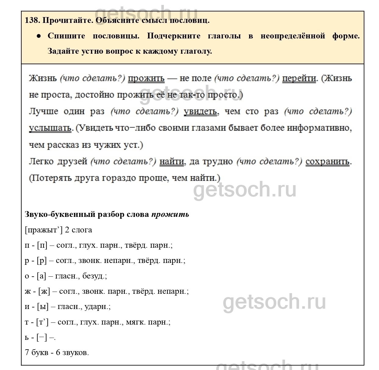 Рассмотрим ответы на Упражнение 138 из учебника по русскому языку для 4 класса Канакиной