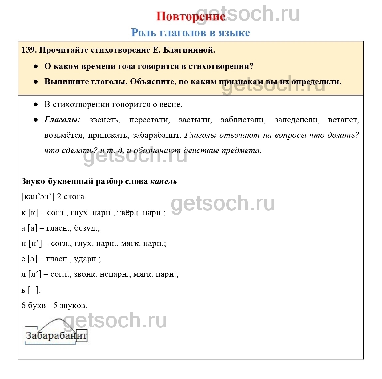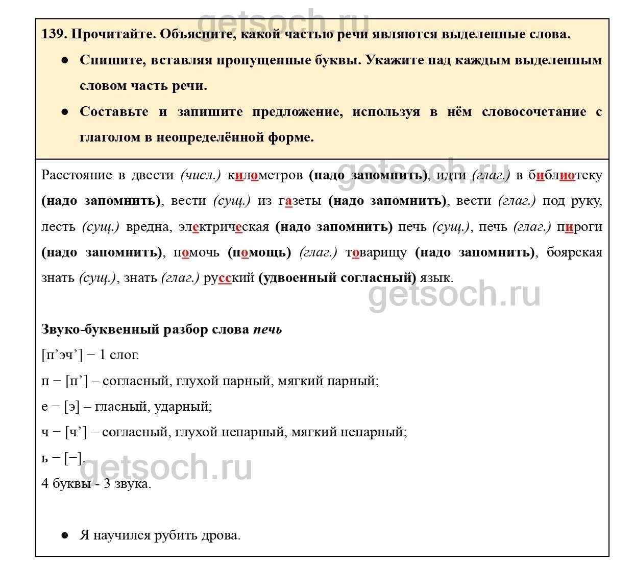 Рассмотрим ответы на Упражнение 139 из учебника по русскому языку для 4 класса Канакиной