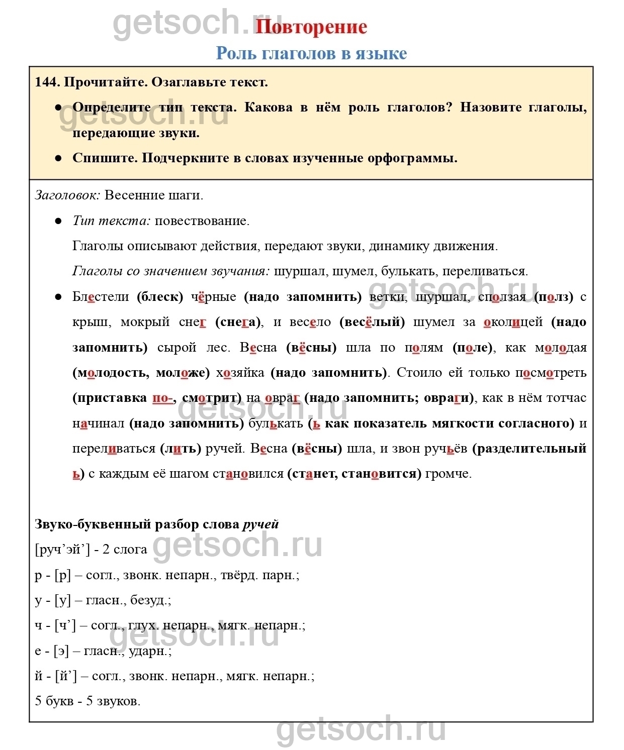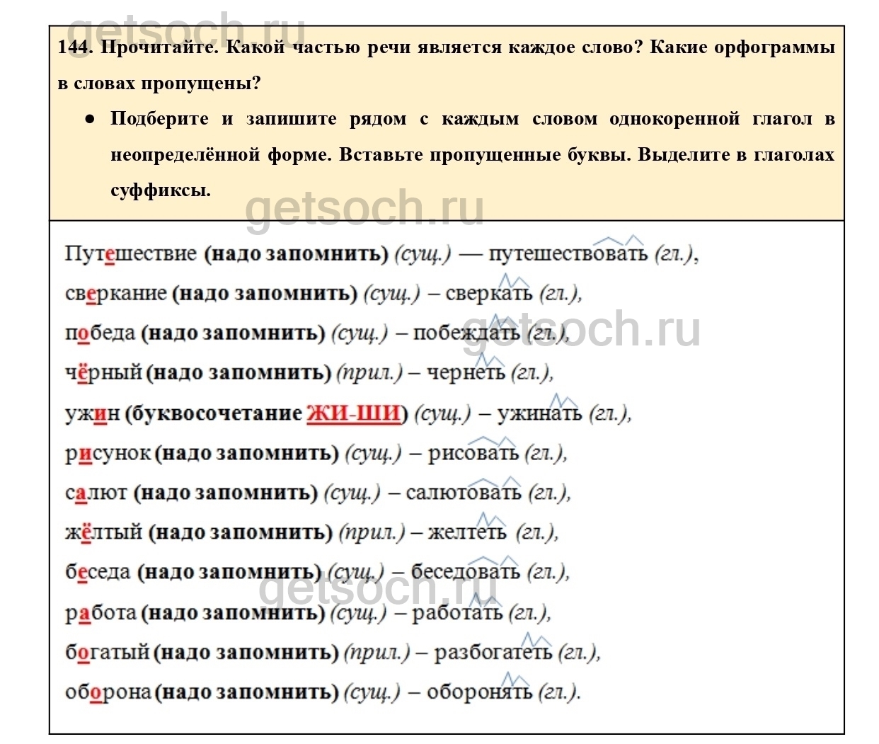Рассмотрим ответы на Упражнение 144 из учебника по русскому языку для 4 класса Канакиной