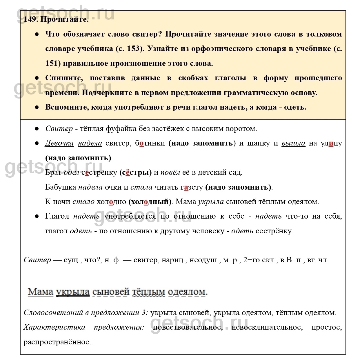 Рассмотрим ответы на Упражнение 149 из учебника по русскому языку для 4 класса Канакиной