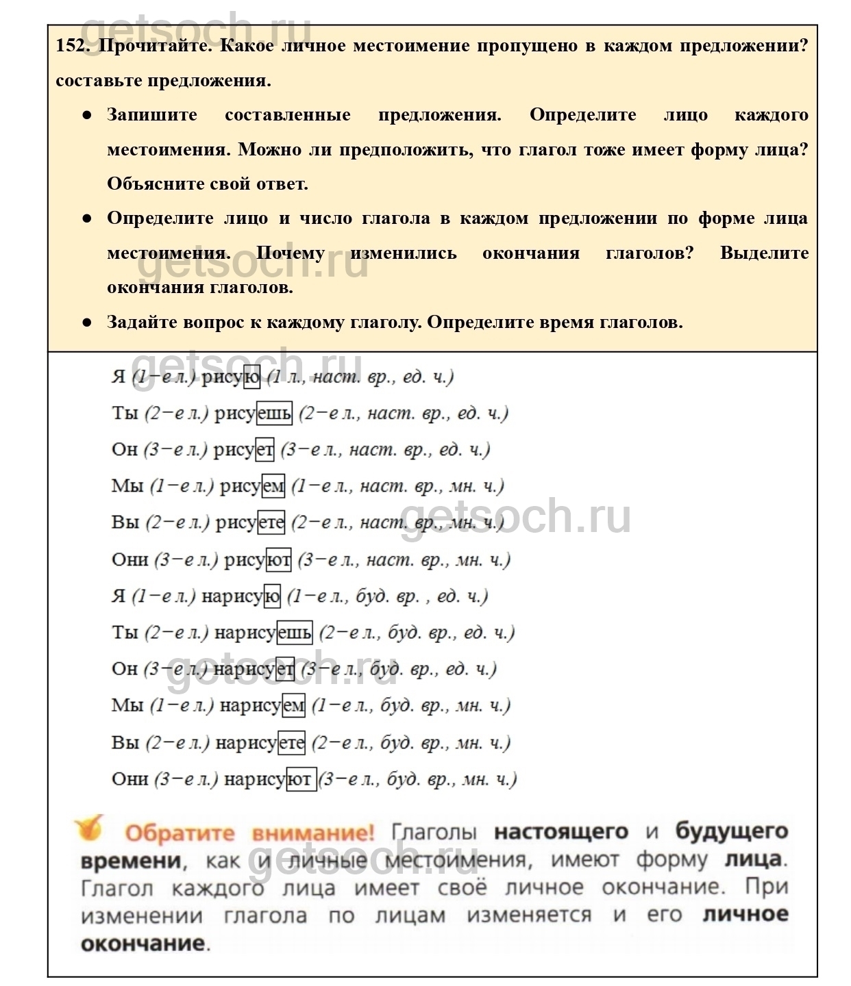 Рассмотрим ответы на Упражнение 152 из учебника по русскому языку для 4 класса Канакиной