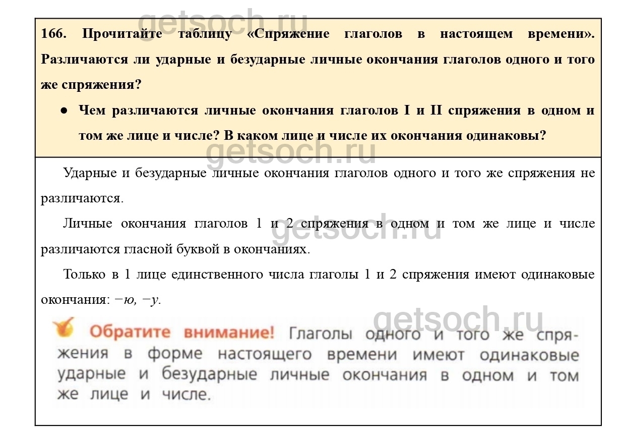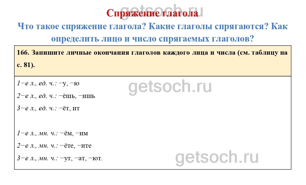 166. Запишите личные окончания глаголов каждого лица и числа (см. таблицу на с. 81).