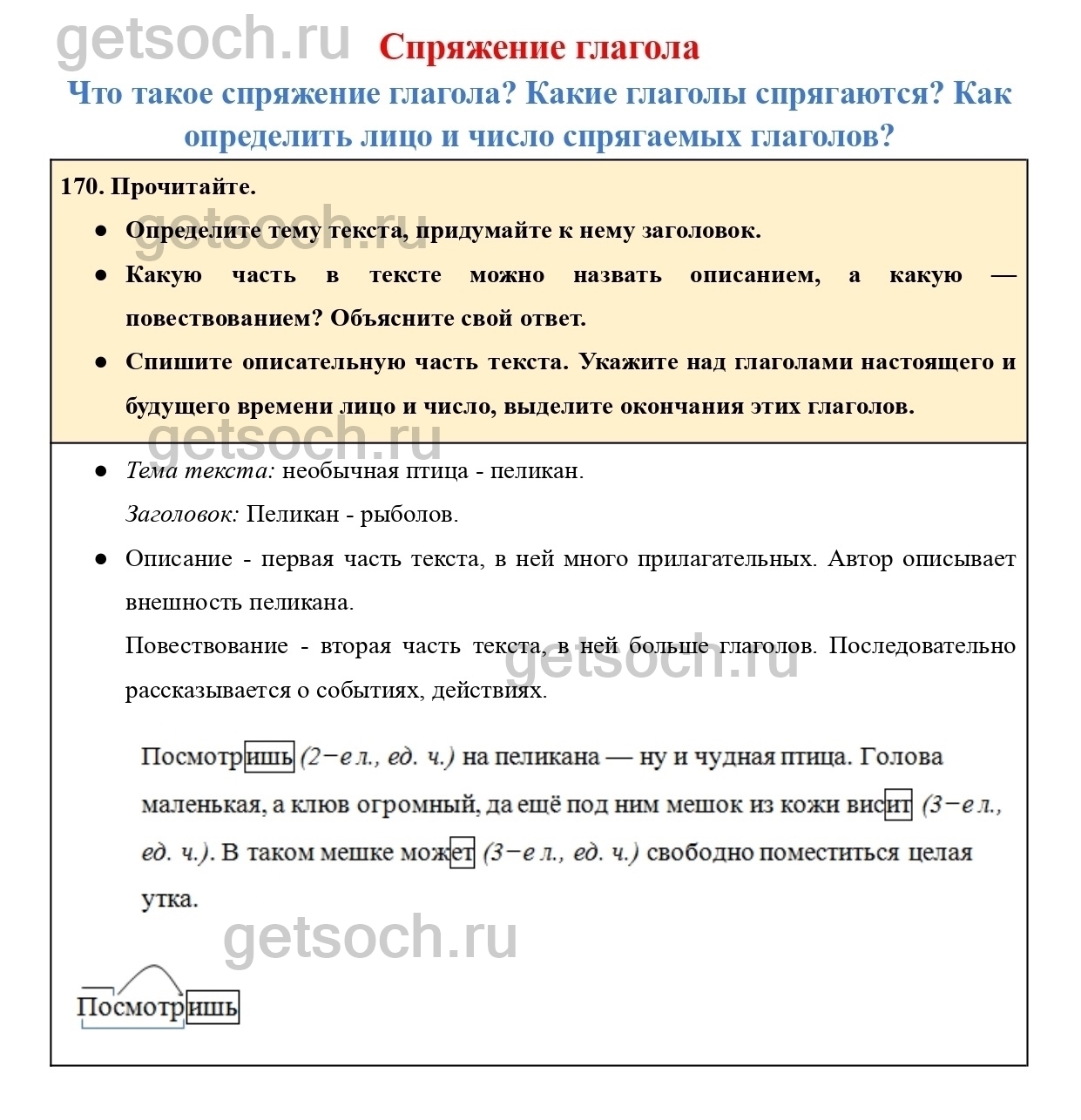Рассмотрим ответы на Упражнение 170 из учебника по русскому языку для 4 класса Канакиной