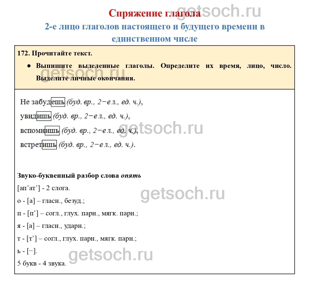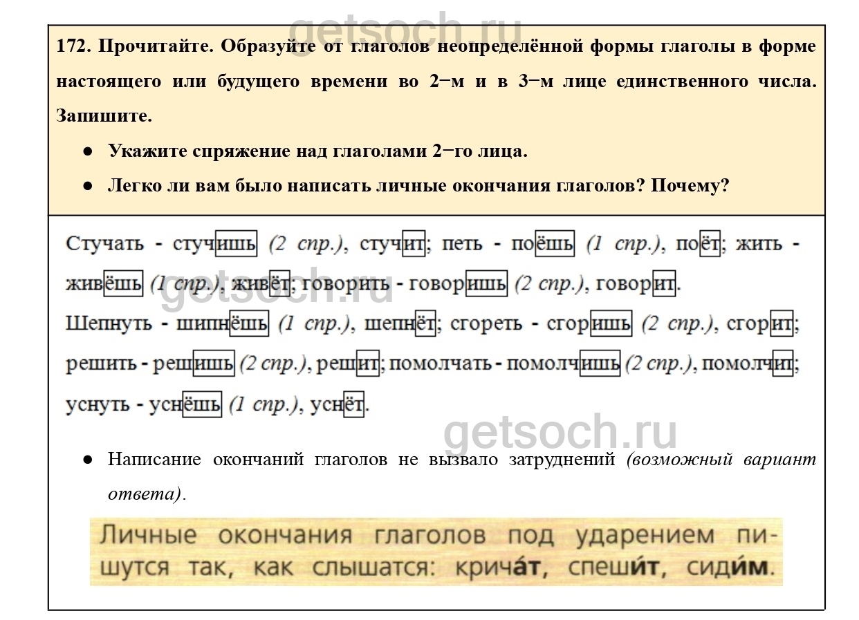 Рассмотрим ответы на Упражнение 172 из учебника по русскому языку для 4 класса Канакиной