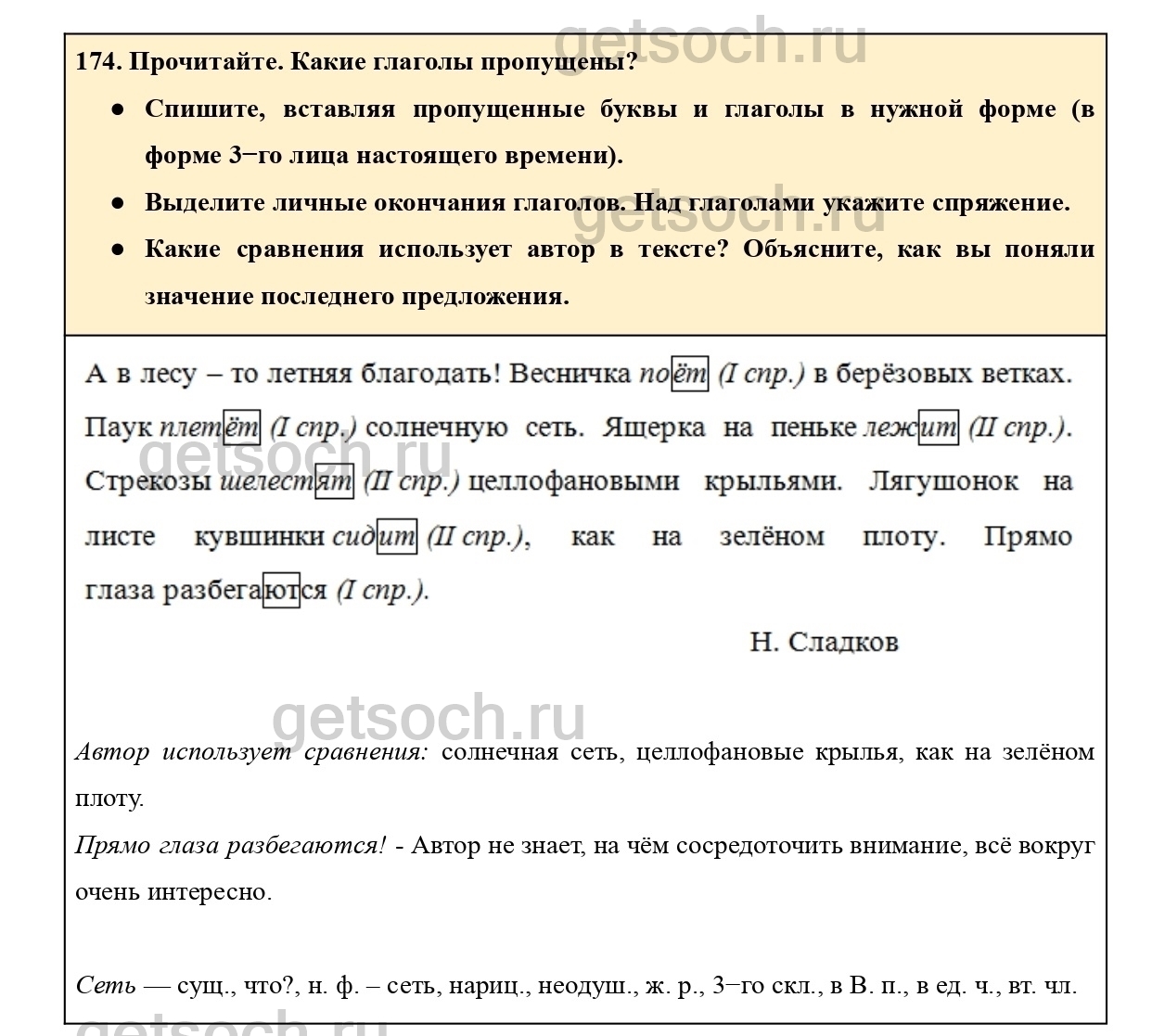 Рассмотрим ответы на Упражнение 174 из учебника по русскому языку для 4 класса Канакиной