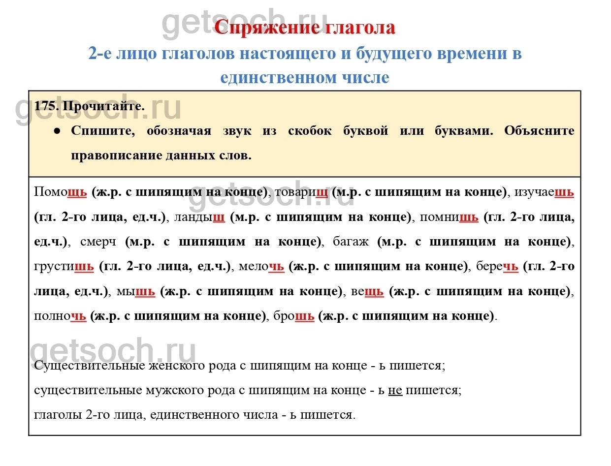 Рассмотрим ответы на Упражнение 175 из учебника по русскому языку для 4 класса Канакиной