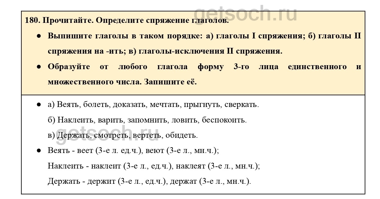 Рассмотрим ответы на Упражнение 180 из учебника по русскому языку для 4 класса Канакиной