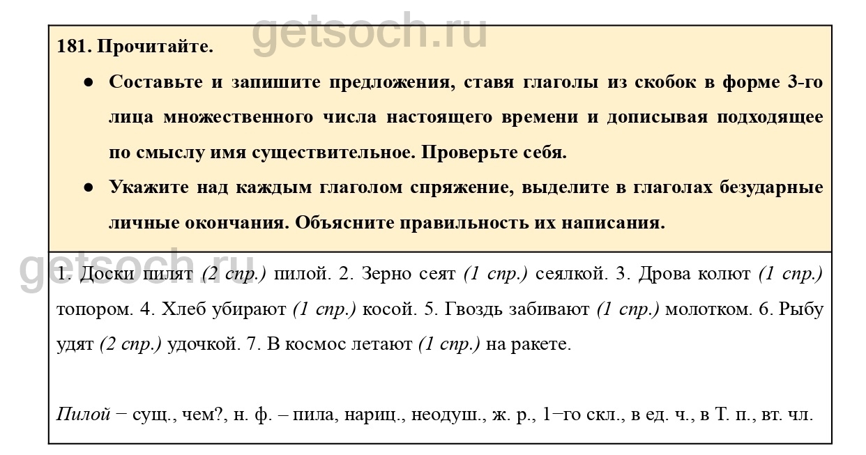 Рассмотрим ответы на Упражнение 181 из учебника по русскому языку для 4 класса Канакиной