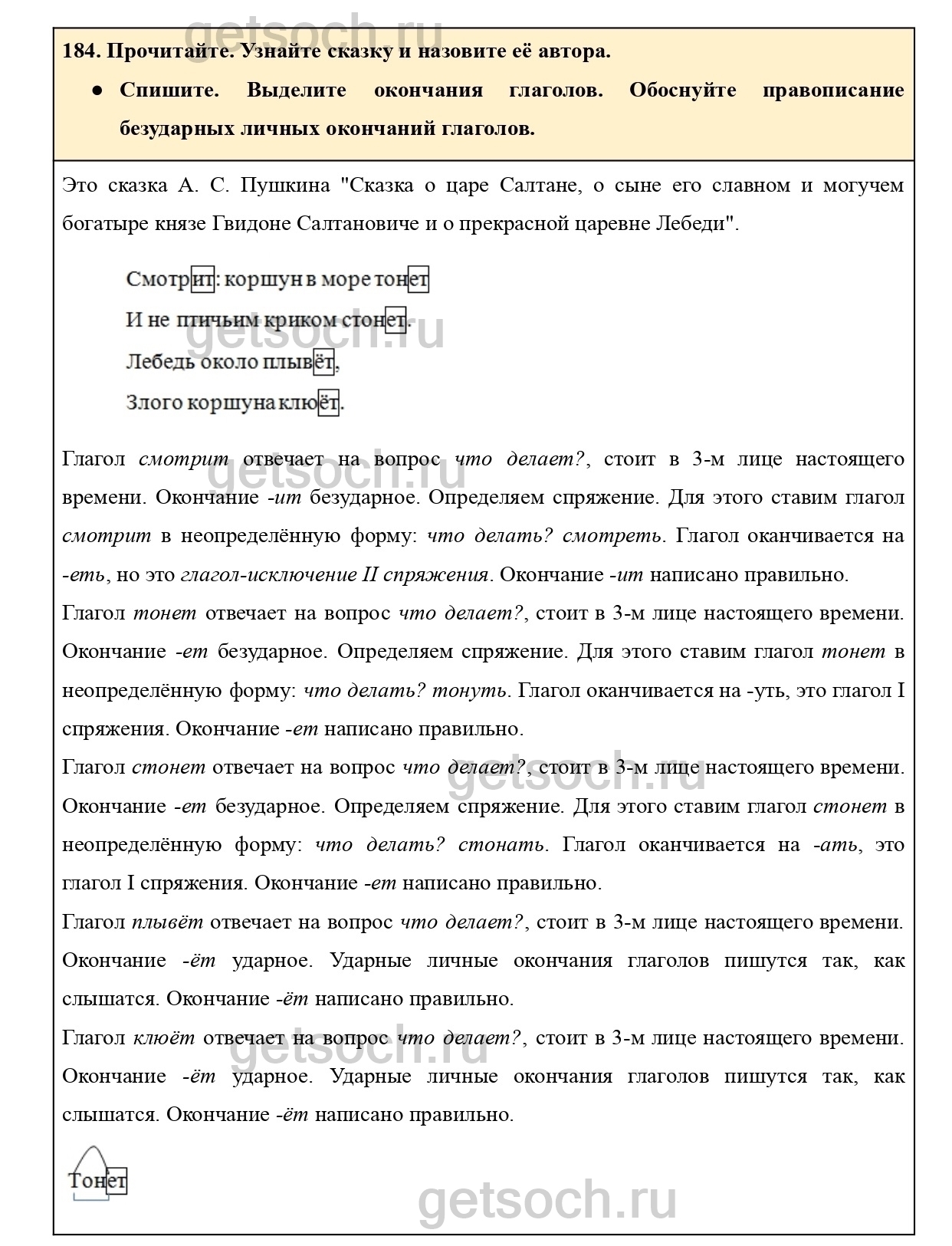 Рассмотрим ответы на Упражнение 184 из учебника по русскому языку для 4 класса Канакиной