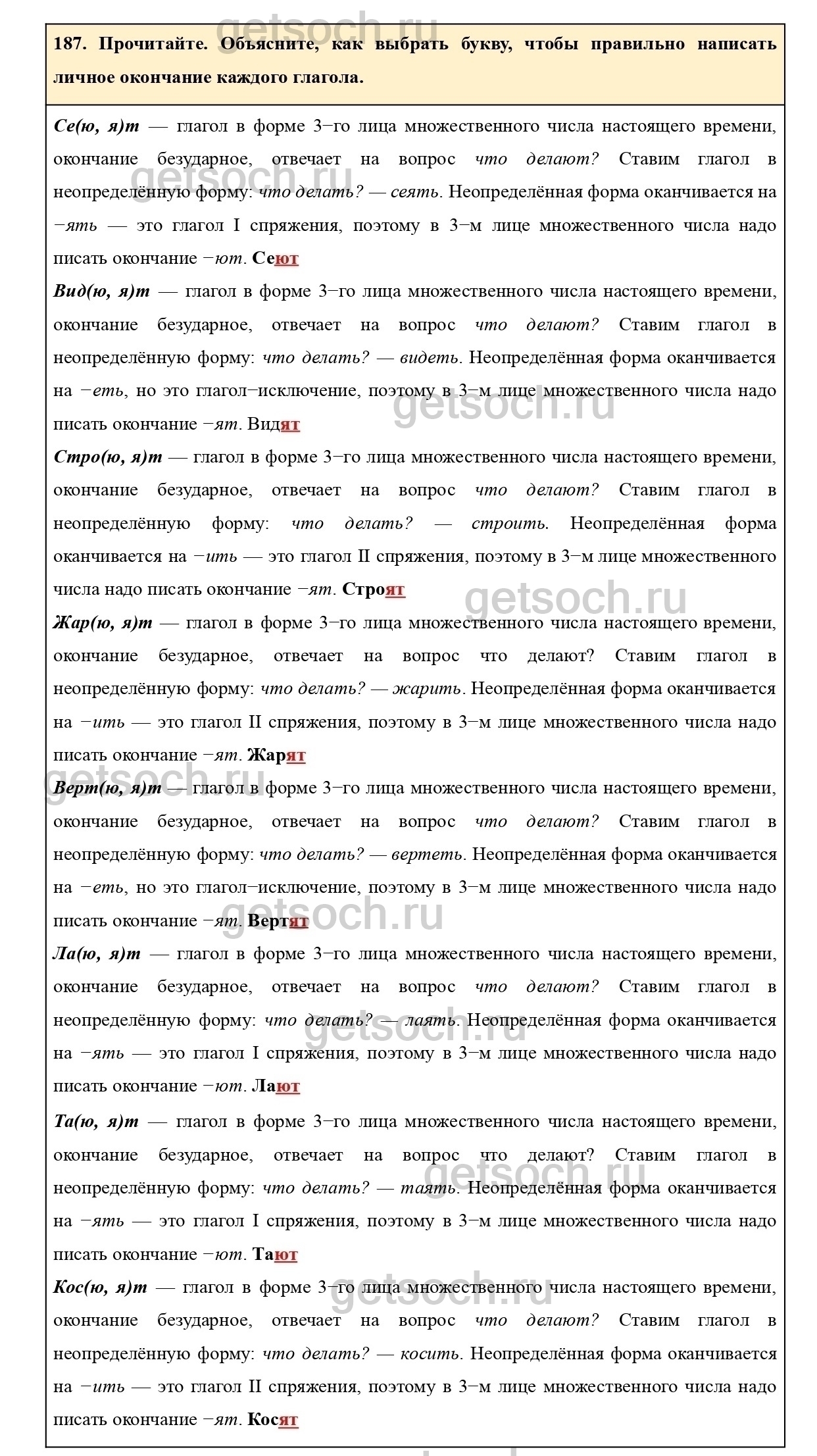 Рассмотрим ответы на Упражнение 187 из учебника по русскому языку для 4 класса Канакиной