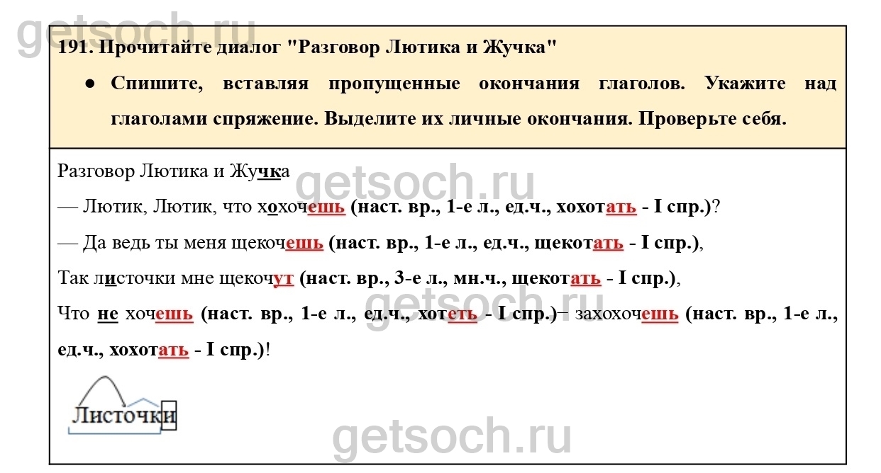 Рассмотрим ответы на Упражнение 191 из учебника по русскому языку для 4 класса Канакиной