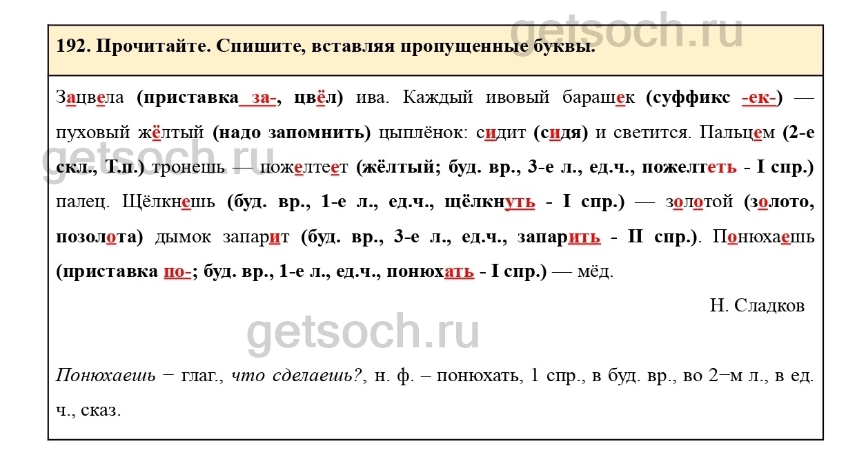 Рассмотрим ответы на Упражнение 192 из учебника по русскому языку для 4 класса Канакиной