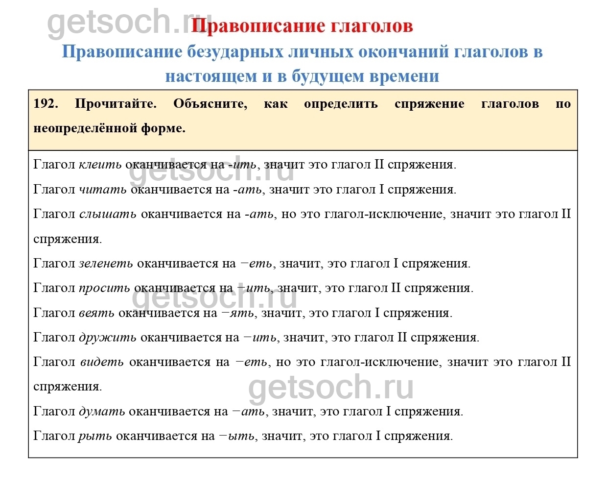 192. Прочитайте. Объясните, как определить спряжение глаголов по неопределённой форме.