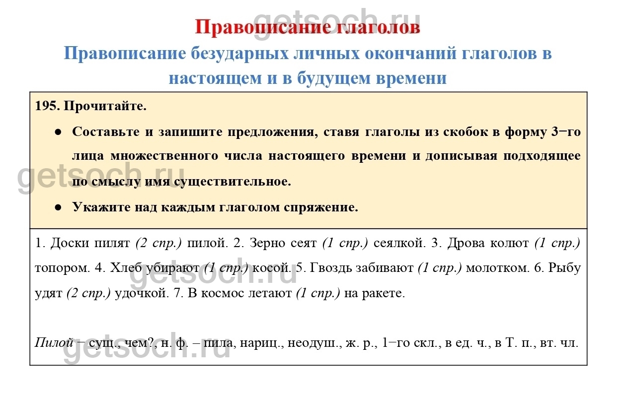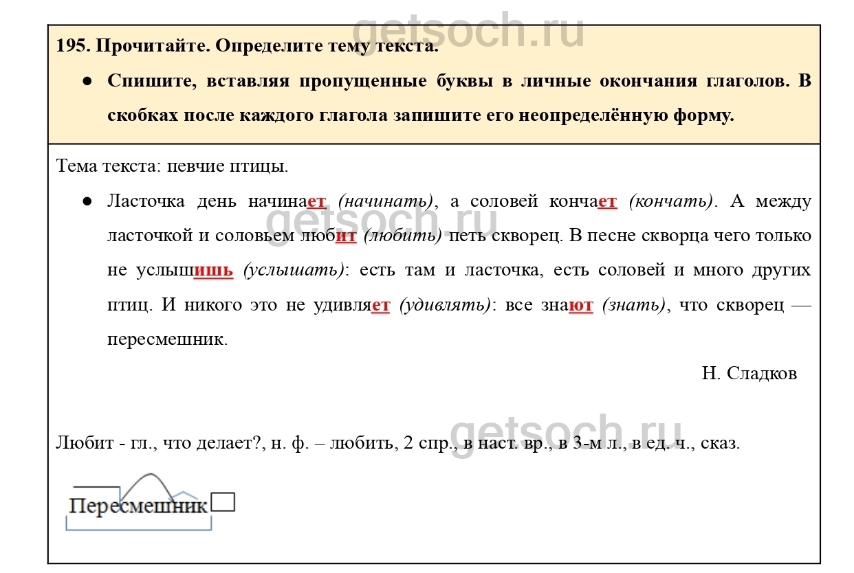 Рассмотрим ответы на Упражнение 195 из учебника по русскому языку для 4 класса Канакиной