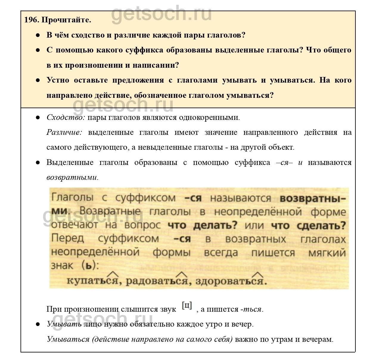 Рассмотрим ответы на Упражнение 196 из учебника по русскому языку для 4 класса Канакиной