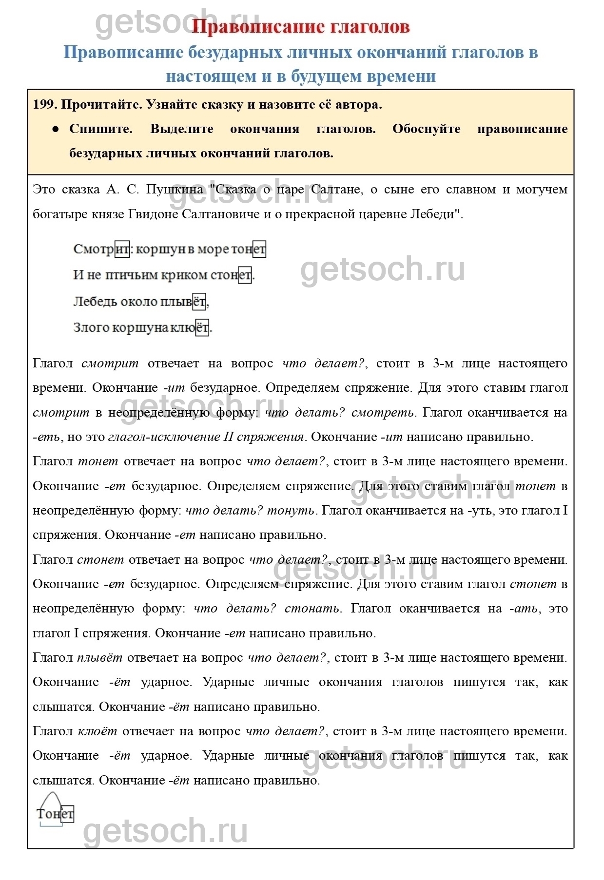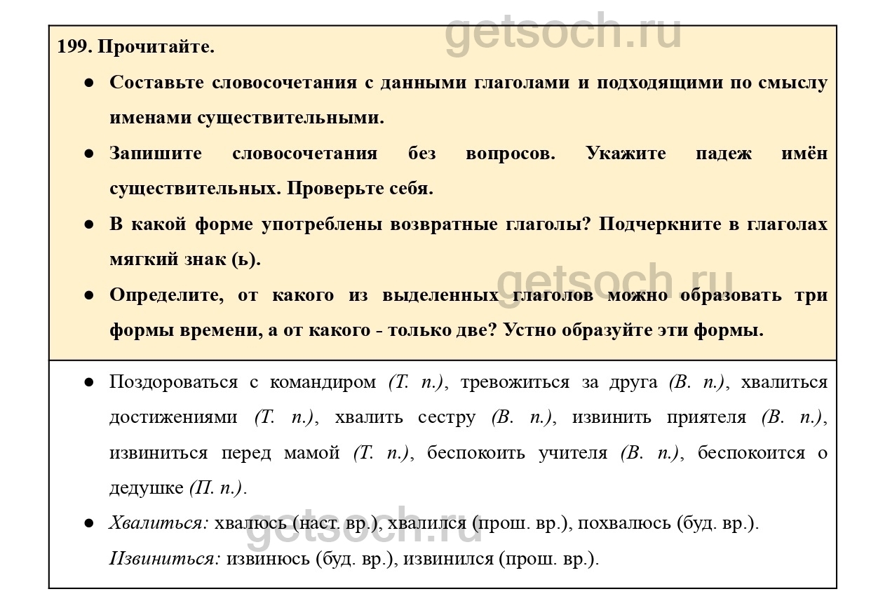 Рассмотрим ответы на Упражнение 199 из учебника по русскому языку для 4 класса Канакиной