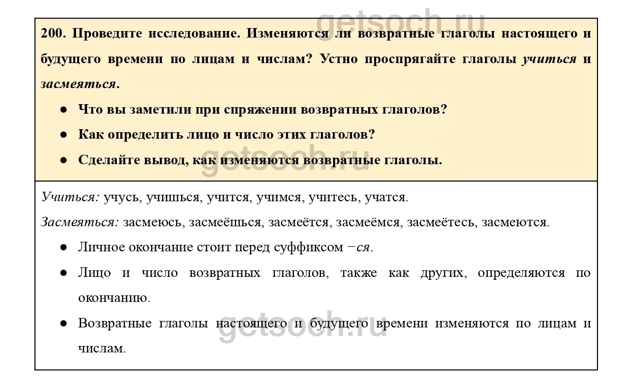 Рассмотрим ответы на Упражнение 200 из учебника по русскому языку для 4 класса Канакиной