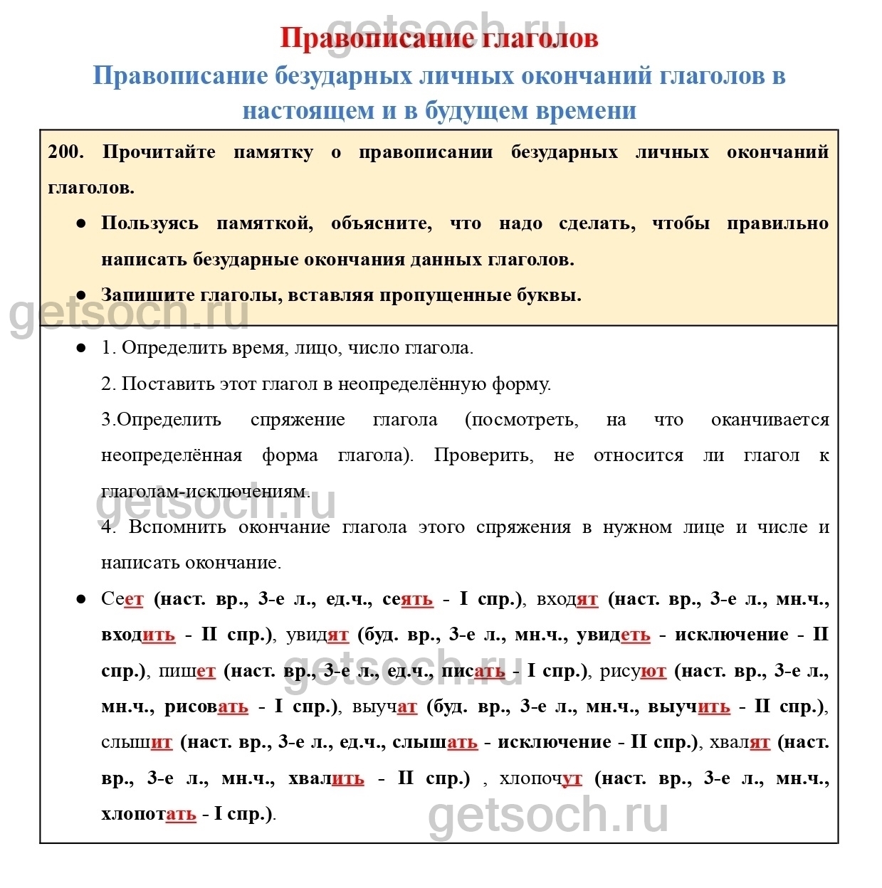 200. Прочитайте памятку о правописании безударных личных окончаний глаголов.