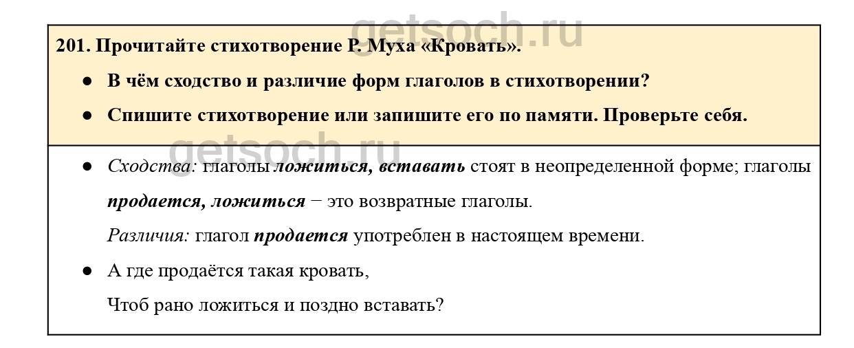 Рассмотрим ответы на Упражнение 201 из учебника по русскому языку для 4 класса Канакиной