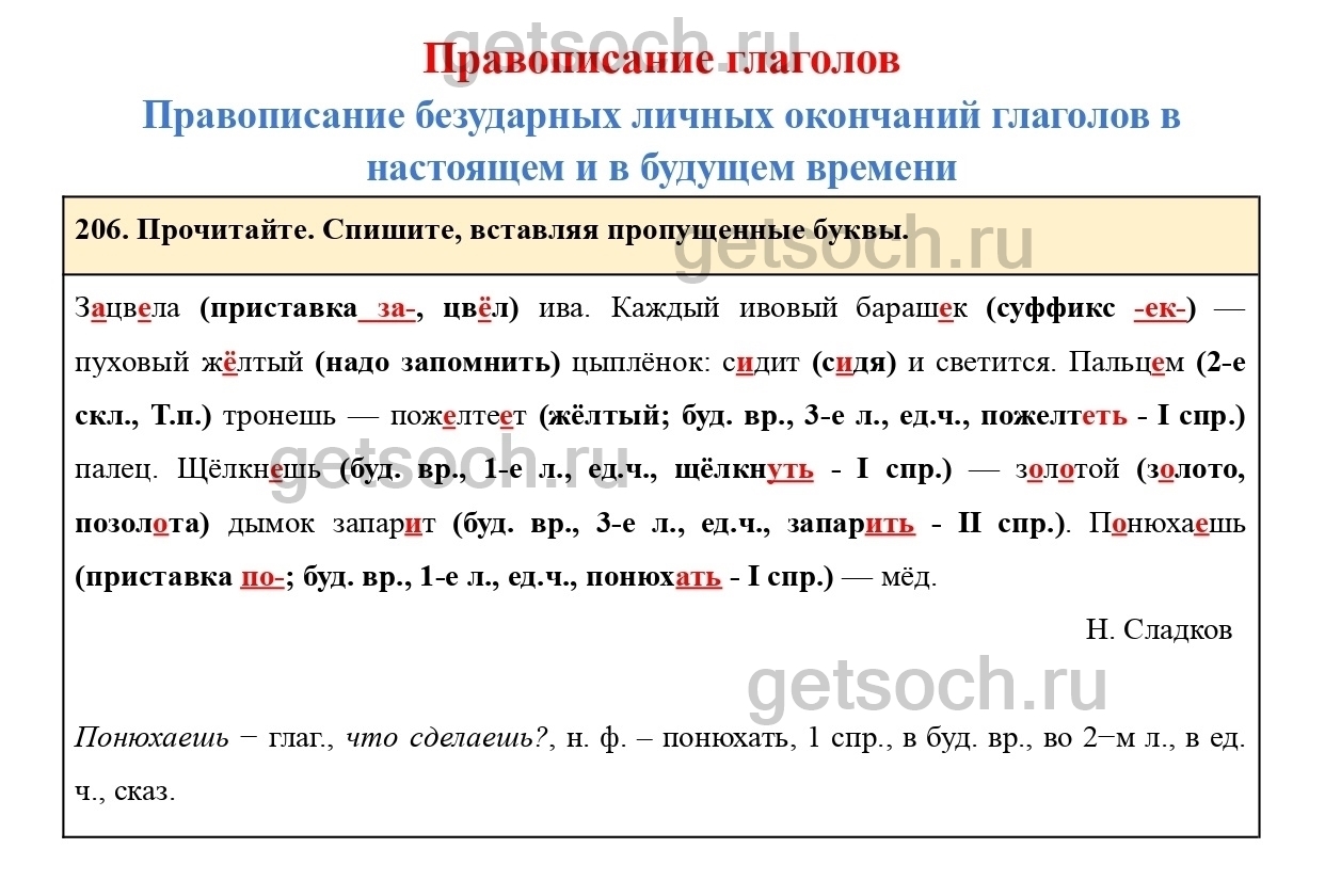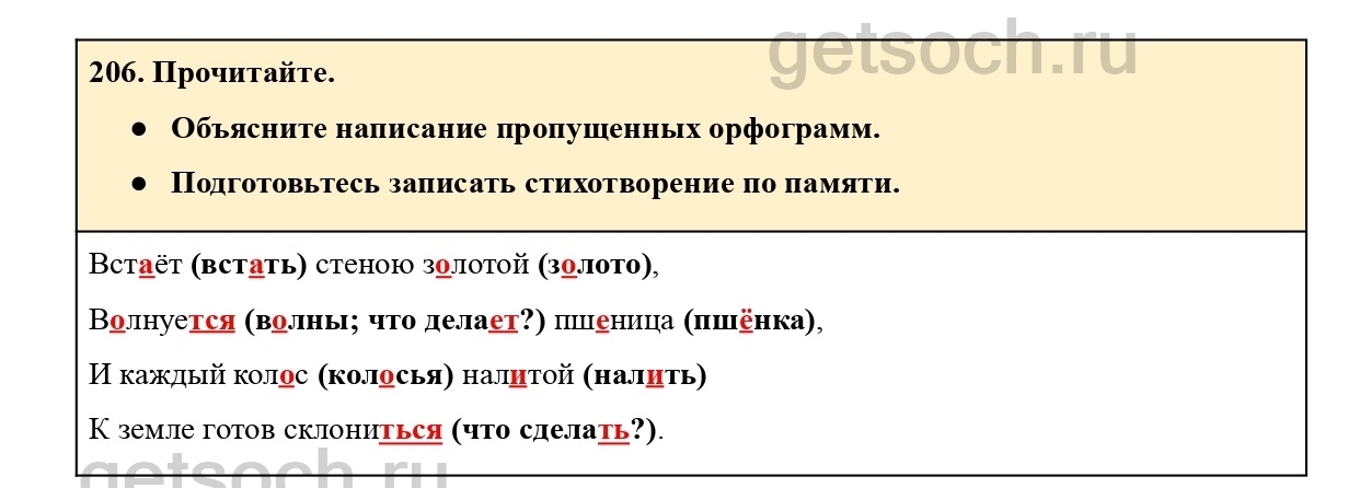Рассмотрим ответы на Упражнение 206 из учебника по русскому языку для 4 класса Канакиной
