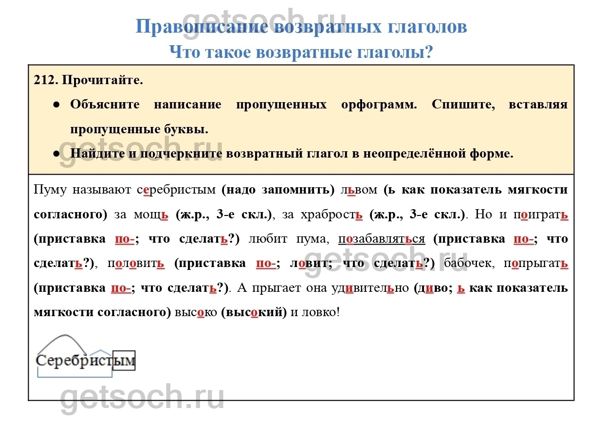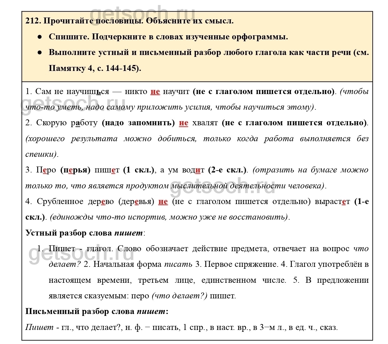 Рассмотрим ответы на Упражнение 212 из учебника по русскому языку для 4 класса Канакиной