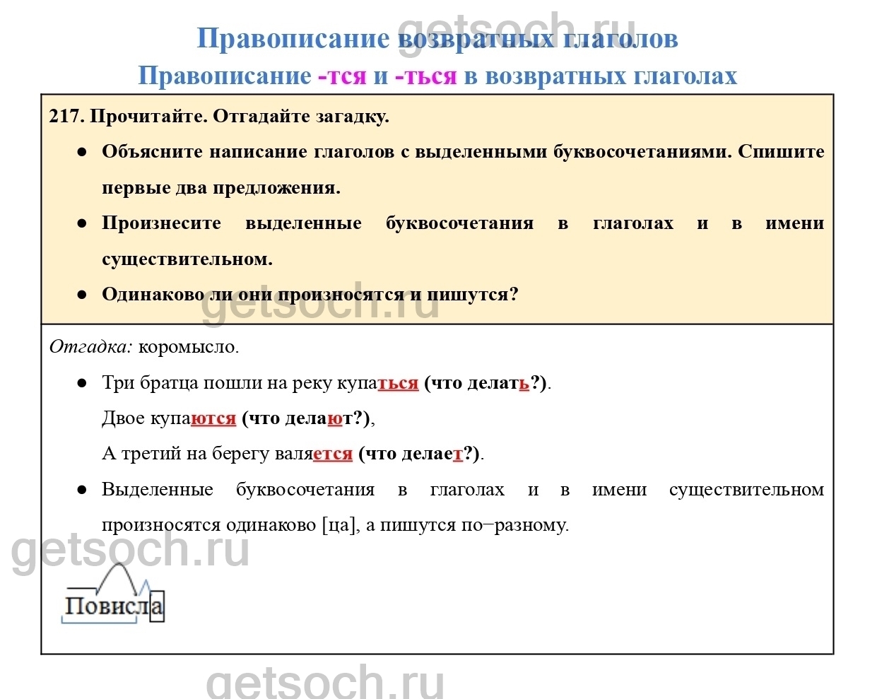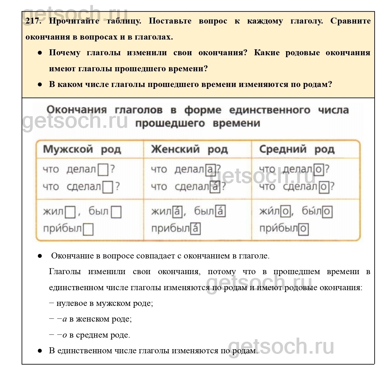 Рассмотрим ответы на Упражнение 217 из учебника по русскому языку для 4 класса Канакиной