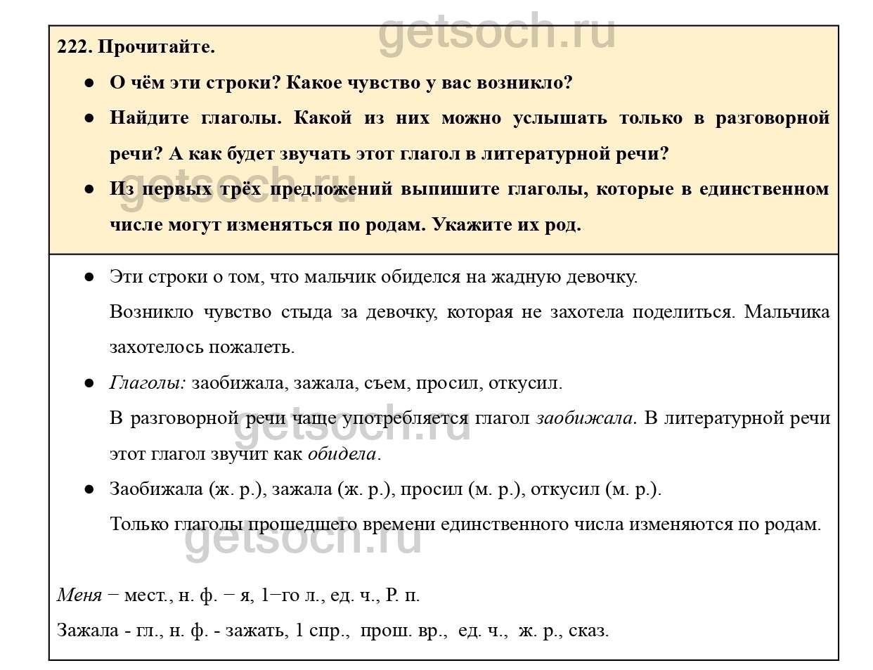 Рассмотрим ответы на Упражнение 222 из учебника по русскому языку для 4 класса Канакиной