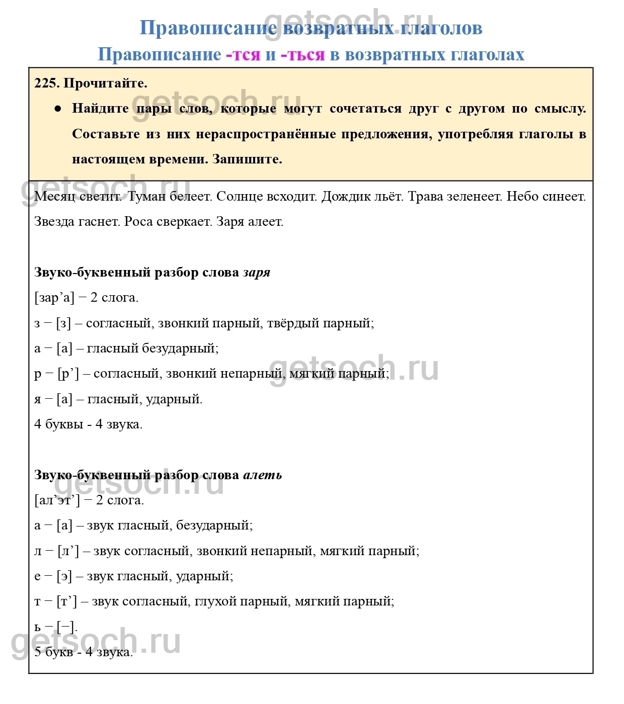 Рассмотрим ответы на Упражнение 225 из учебника по русскому языку для 4 класса Канакиной